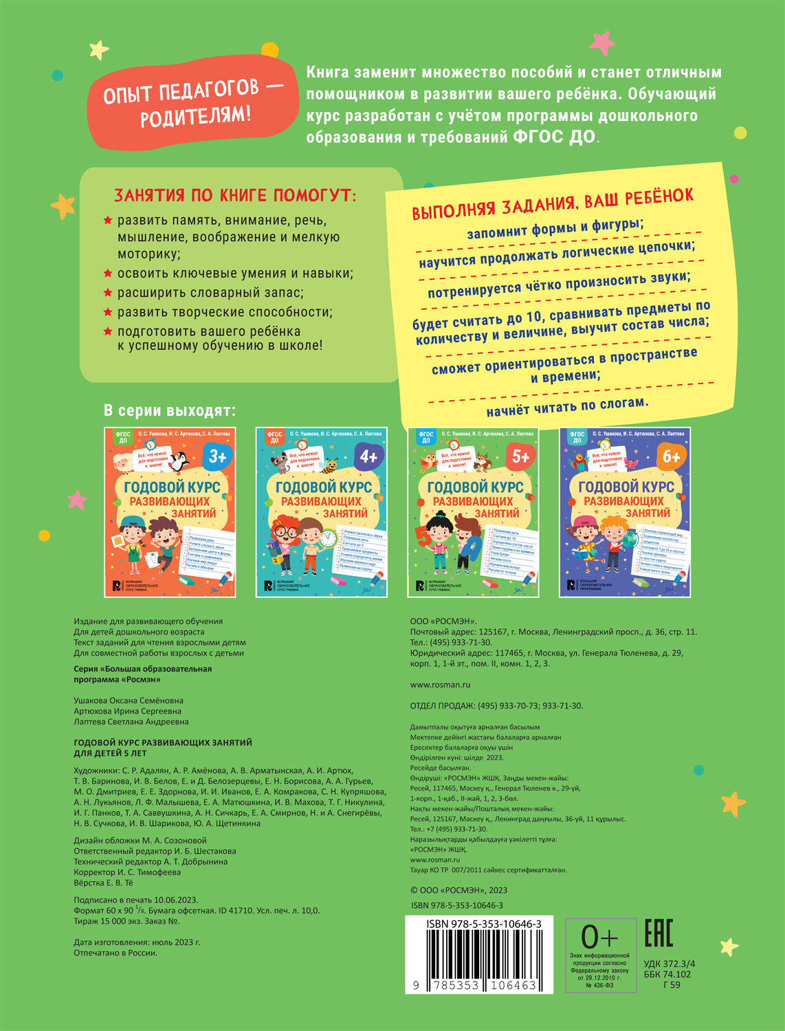 Годовой курс развивающих занятий для детей 5 лет (Артюхова Ирина Сергеевна, Лаптева Светлана Андреевна, Ушакова Оксана Семеновна); РОСМЭН, 2023