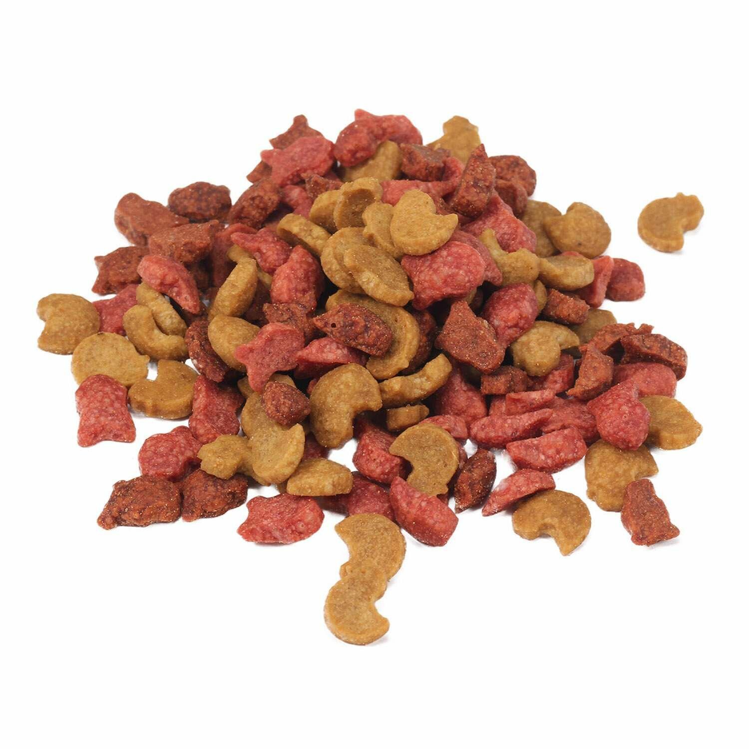 Состав: мясо и мясные субпродукты (45%, в том числе баранина 24%), злаки, гидролизат печени говяжьей, пивные дрожжи, сухая мякоть свеклы, жир животный, смесь токоферолов и экстракт розмарина, таурин, витаминно-минеральный комплекс.