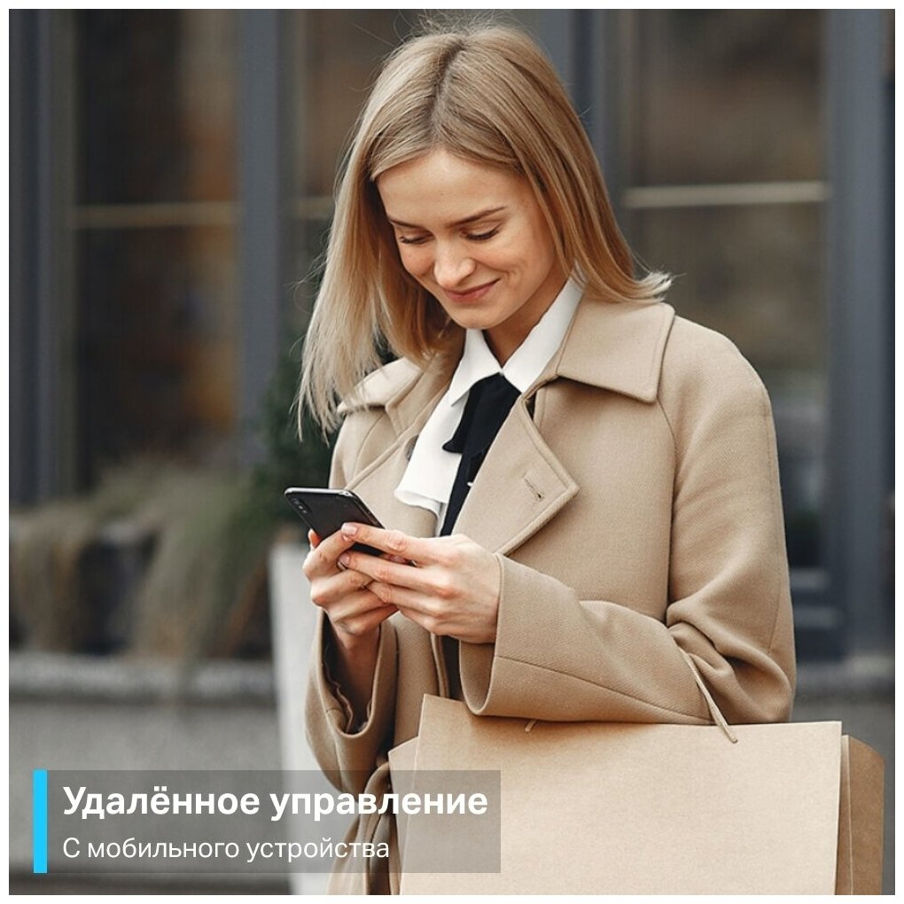 - Простая настройка и использование — не требуется отдельный центр управления; лёгкая настройка и управление при помощи мобильного приложения