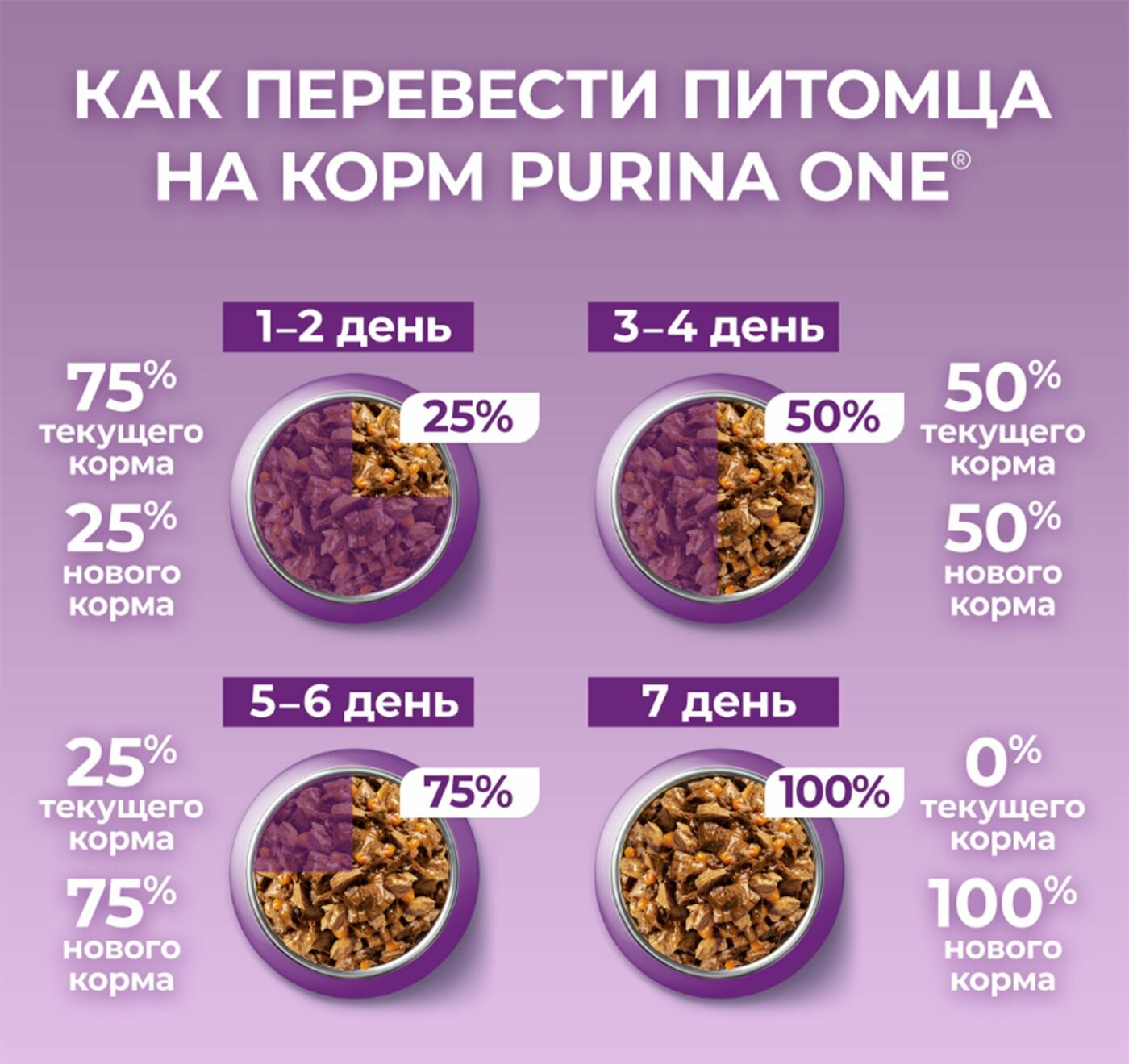 Корм Purina ONE® - это полнорационное сбалансированное питание, сочетающее отличный вкус и гарантированную пользу.