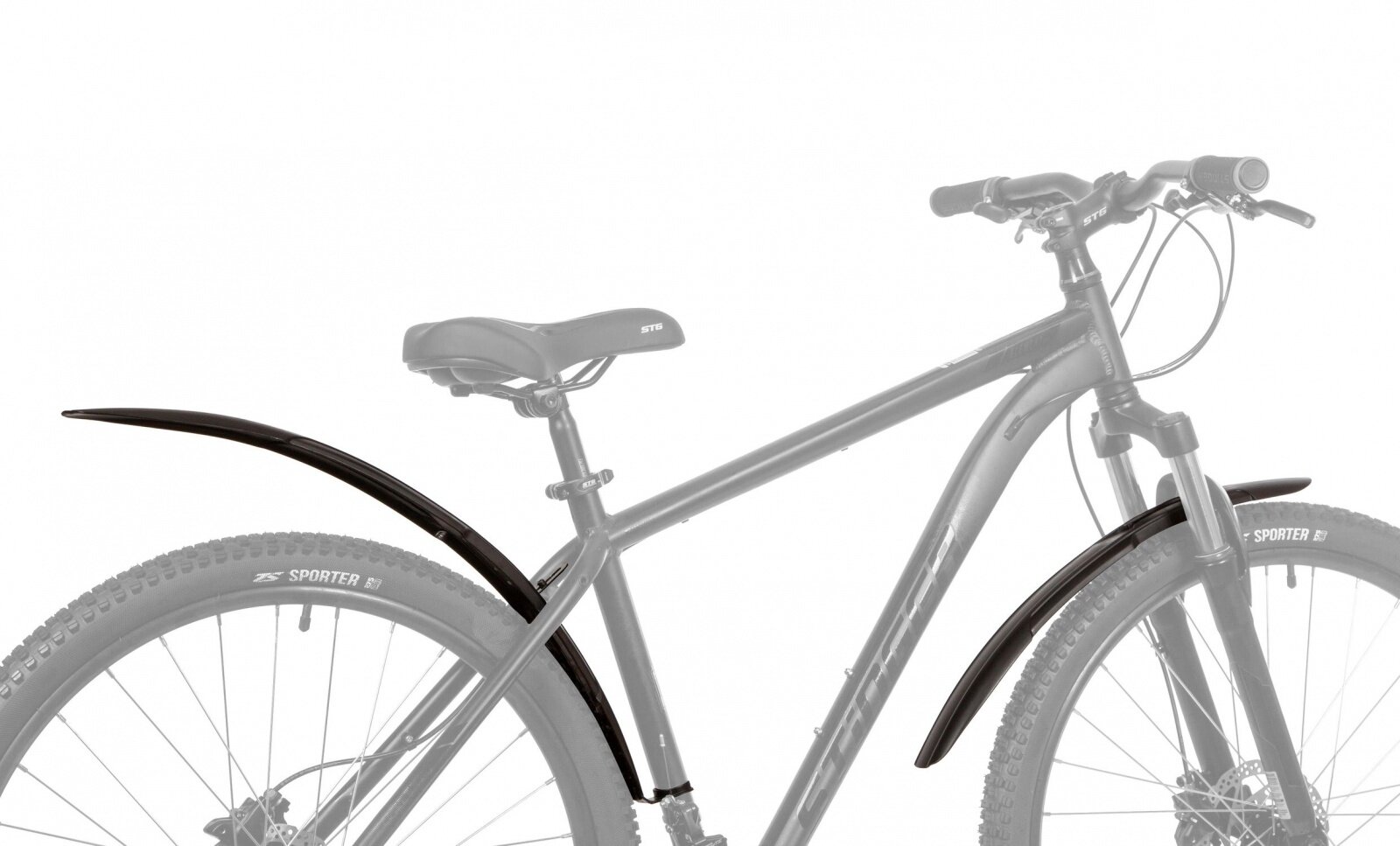 Комплект широких пластиковых крыльев для велосипеда STG HL-806. Крылья выполнены из прочного пластика, подойдут для велосипедов с размером колес от 26 до 28 дюймов. Переднее крыло крепится с использованием стандартного крепления на вилке велосипеда, заднее крыло оснащено стандартным креплением на раму велосипеда. Данный комплект, за счет универсального типа крепления, подойдет для большинства современных велосипедов. Цвет крыльев черный.