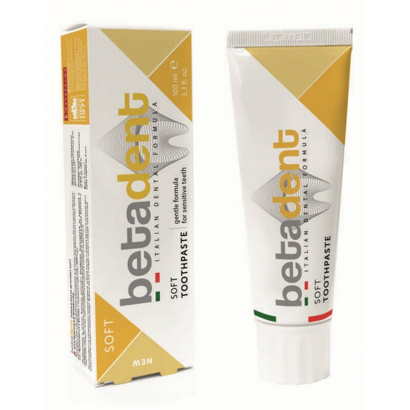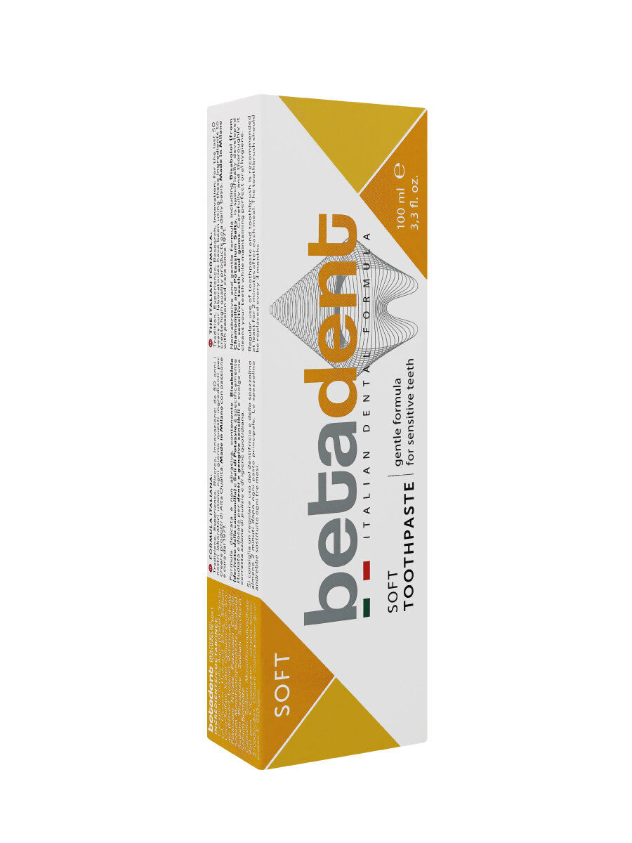 Зубная паста Betadent – неабразивная и бережная формула, включающая бисаболол (из Ромашки) и калиевые соли, специально разработана для чувствительных зубов и десен. Бережно и тщательно очищает зубы, поддерживая гигиену полости рта.