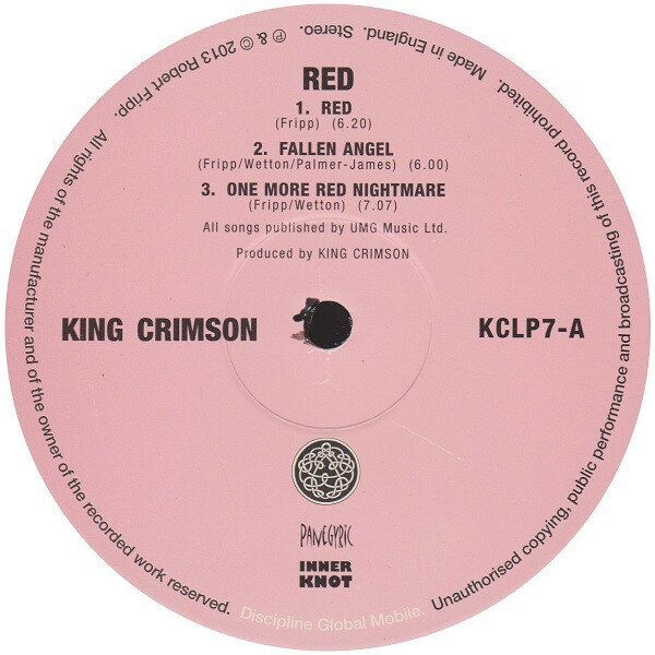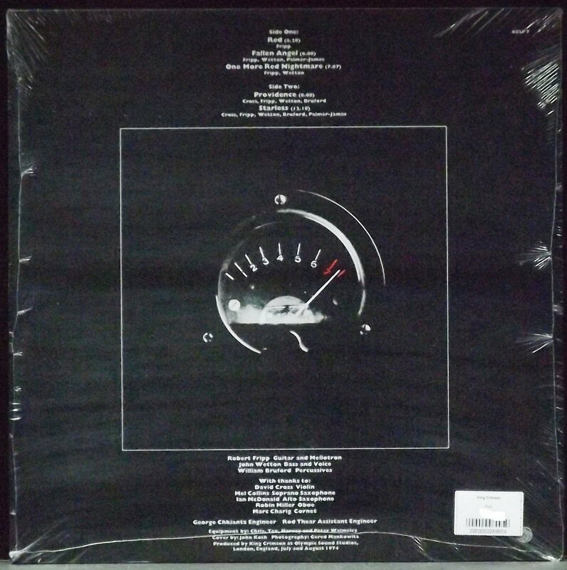 Виниловая пластинка - седьмая студийная работа King Crimson, изданная в 1974 году. Это последняя пластинка коллектива, записанная в 1970-е годы. На момент записи альбома Дэвид Кросс уже не был членом группы, однако принимал участие в работе над пластинкой в качестве приглашенного музыканта. Кроме того, в записи приняли участие бывшие члены King Crimson, Мел Коллинз и Иэн Макдональд. Содержание: A1 Red A2 Fallen Angel A3 One More Red Nightmare B1 Providence B2