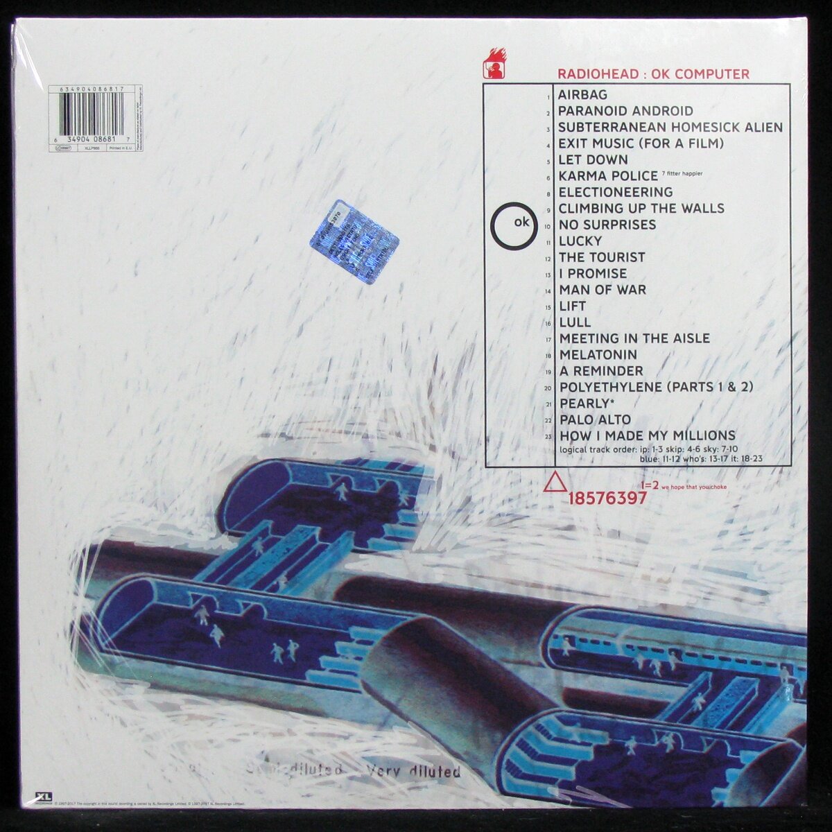 Исполнитель RadioheadАльбом OK Computer OKNOTOK 1997-2017Год выхода 1997Год релиза 2017Лэйбл XL RecordingsФормат 3LPСостояние NewЖанр Electronic / RockСтиль Alternative Rock / Art Rock / ExperimentalЦвет BlackСтрана EUReissue, Remastered the original analogue tapes, 180 Gram, Triple-sleeve Includes colour printed inner sleeves and a a download code for the album (MP3 or 16/44.1 WAV files).The release consists of the original twelve track album, three unreleased tracks and eight B-sides.ipA1 Airbag A2 Paranoid Android A3 Subterranean Homesick Alien skipB4 Exit Music (For A Film) B5 Let Down B6 Karma Police skyC7 Fitter Happier C8 Electioneering C9 Climbing Up The Walls C10 No Surprises blueD11 Lucky D12 The Tourist who'sE13 I Promise E14 Man Of WarE15 Lift E16 Lull E17 Meeting In The Aisle itF18 Melatonin F19 A Reminder F20 Polyethylene (Parts 1 & 2) F21 Pearly* F22 Palo Alto F23 How I Made My Millions