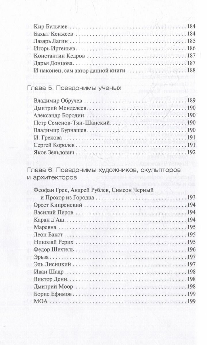Кто только не берет псевдонимы - писатели и актеры, политики и ученые, музыканты, певцы, художники… Перечисление фамилий составит объемную книгу. А число самих псевдонимов - у одного Антона Чехова их около семидесяти - и вовсе не поддается счету. Псевдонимом может стать любой типографский знак, обыкновенное многоточие и математический символ. Есть псевдонимы из одной буквы - например, ь или ъ. Но существуют и многосоставные псевдонимы - самый длинный из приводимых в этой книге содержит 288 букв и пять запятых. Словом, эта книга - весьма занимательное чтение. Но в то же время очень серьезное, поскольку автор задается вопросом: почему тот или иной человек прячет свое настоящее имя? Истории возникновения псевдонимов следуют одна за другой, и становится ясно: для кого-то это игра, для кого-то - способ сказать то, что думаешь, и избежать неприятных для себя последствий, а для кого-то сохранить инкогнито - вопрос жизни и смерти.