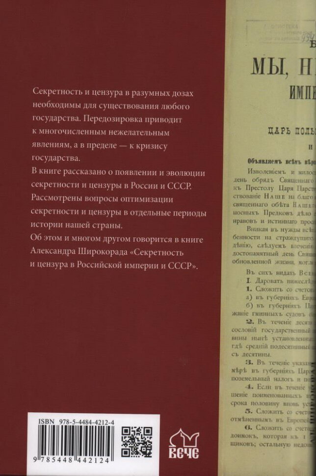 Секретность и цензура в Российской империи и СССР (Широкорад Александр Борисович); Вече, 2023