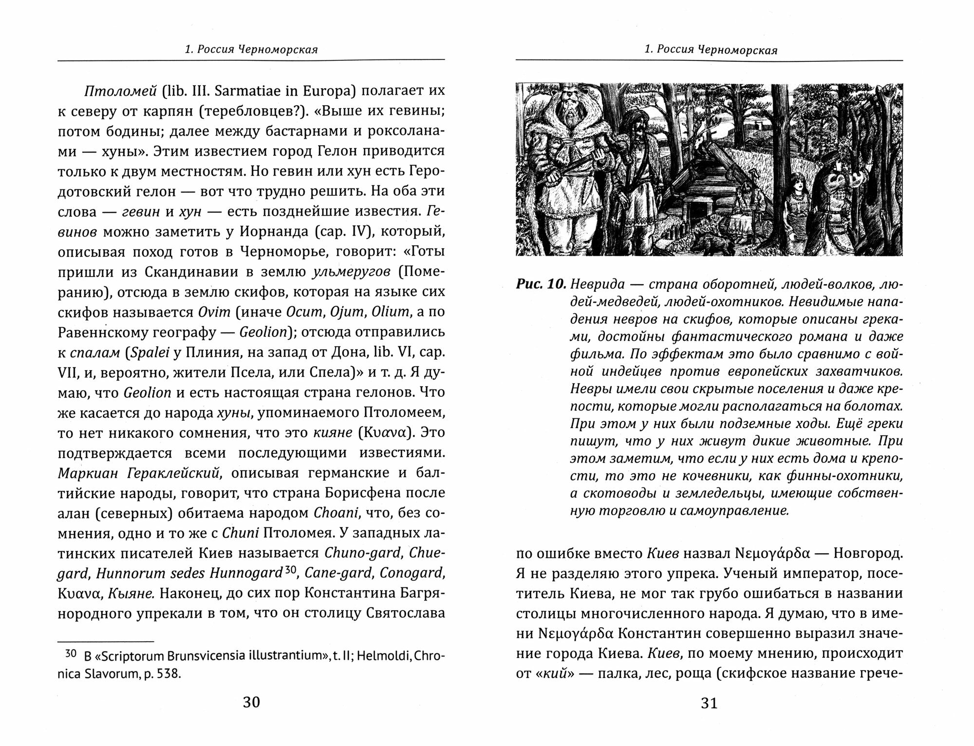 Автор придерживается точки зрения, согласно которой предки руссов и славян довольно широко расселились на просторах Евразии и древние историки описывали их под разными именами, подчас неточными. Ф. Л. Морошкин говорит нам: "Теперь же, имея на своей стороне знатный запас филологических и исторических доказательств, с полным убеждением утверждаю, что Русь происходит от слова "лес", или "роща". Вот основное положение!"