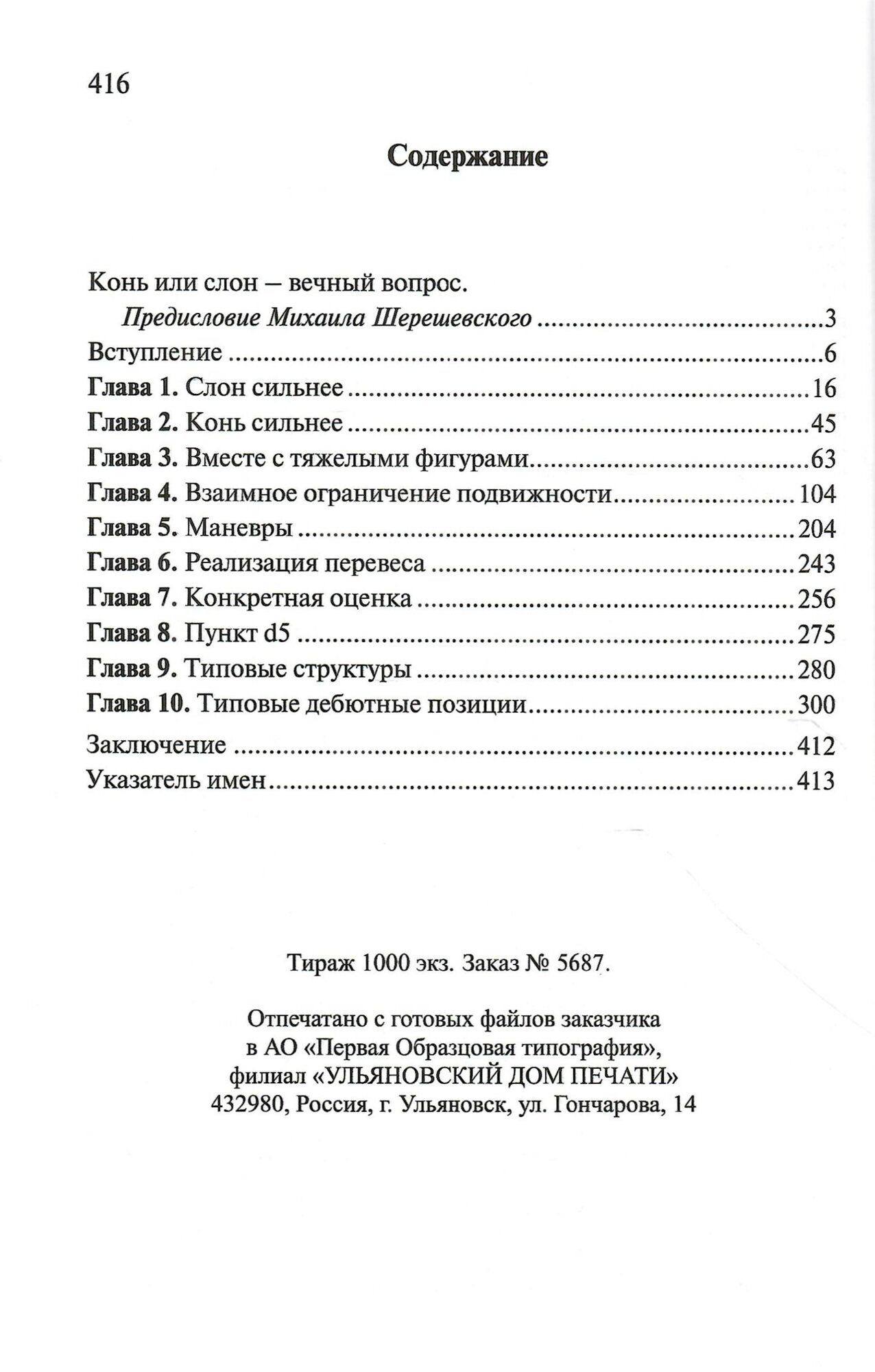 Цель этой книги – помочь вам улучшить понимание шахмат, выработать «шестое чувство» для правильной и быстрой оценки позиции при различном соотношении сил: и слон против коня «один на один», и при ладьях, и при ферзях, и при всех тяжелых фигурах. Рассмотрены также типовые пешечные структуры, поскольку во многих дебютах борьба этих разноплановых фигур начинается с самых первых ходов. Автор – опытный тренер, воспитавший не одно поколение шахматистов, не перегружает читателя компьютерными вариантами, а старается подробно и доходчиво объяснить суть происходящего на доске.