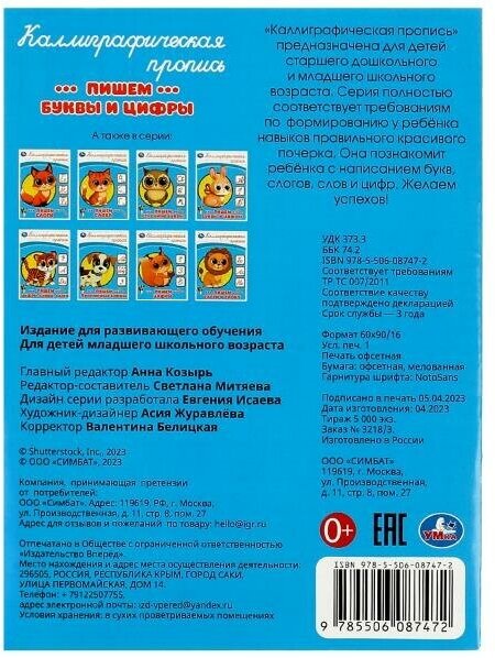 Каллиграфическая пропись. Пишем буквы и цифры ТМ «УМка»: