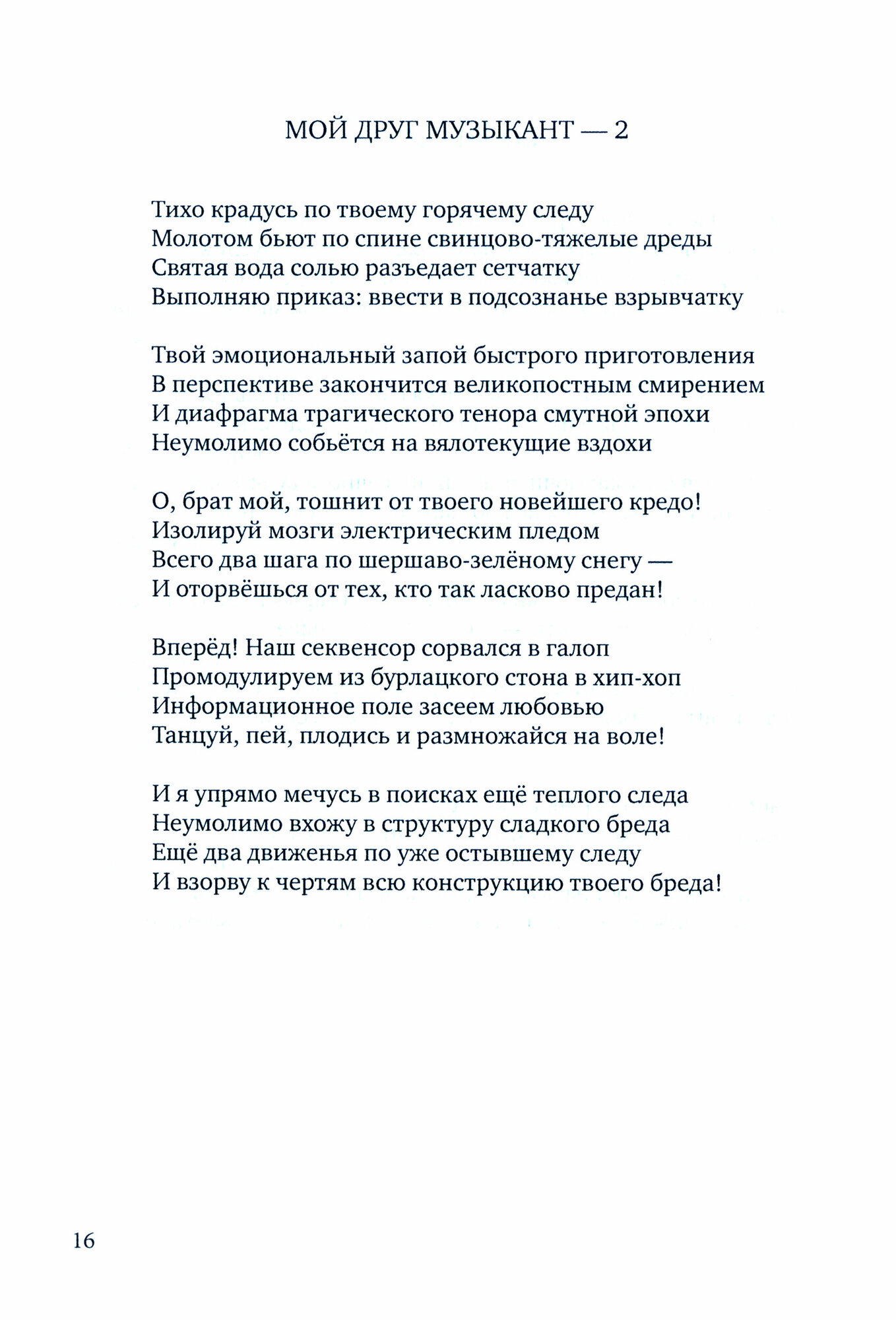 Структурной основой сборника послужило авторское деление на смысловые блоки. Одни из них включают тексты рок-альбомов, ораторий и симфоний, другие - ритмизованные медитации и блуждания в лабиринтах подсознания.