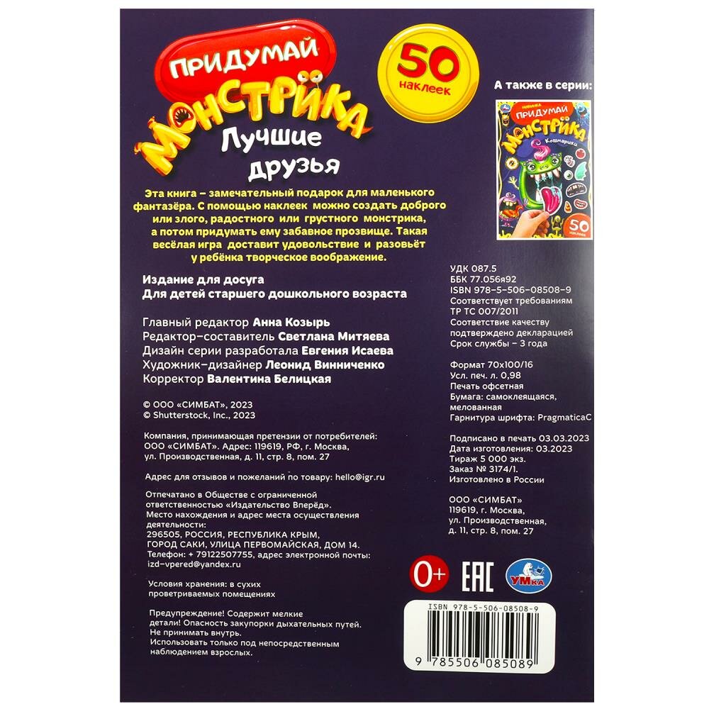 Придумай монстрика. Лучшие друзья. 50 наклеек (без автора); Умка, 2023