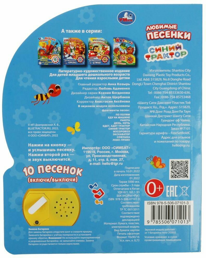Музыкальная книга. 1 кнопка, 10 песенок. Синий трактор. Любимые песенки ТМ «УМка»: