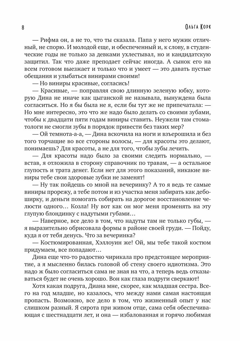 Когда после долгих уговоров подруги, решаешься сходить на вечеринку посвященную Хэллоуину, ожидаешь явно другого, а не перемещения в другой мир. Столько сил и времени потрачено на костюм и ради чего? Оказаться высоко в горах, где лежит снег, в тонкой блузочке и юбке. Костюм ведь простой травницы. Есть пару скляночек на поясе и книга. И что с этим делать? Возможно ли надеется на выживание? Даже огонь нечем разжечь. Остается только сжать зубы и спускаться с горы. Хорошо еще настойку валерьяны с собой взяла, точнее влила во флакончик, когда готовила костюм. И о счастье, спуститься получилось и как же хорошо попасть в тепло с мороза. Единственное, что печально, истощенный организм требует еды и воды. А это что за фрукт? По запаху яблоко напоминает, а вот форма совсем другая. Была, не была. И поем и попью. Отравиться не хотелось бы... Пока изучала книгу, грызла "яблочки", только видимо все таки плохие оказались. Хотя нет, очистительные ?? Пока пыталась найти хорошие кусты, все пораскидала, а вернувшись, не могла найти книгу. Странно. Ага, вот она. "– Вот ты где, – вздохнув от облегчения, я наклонилась к кусту, чтобы достать свою пропажу, – а я тебя ищу-ищу.