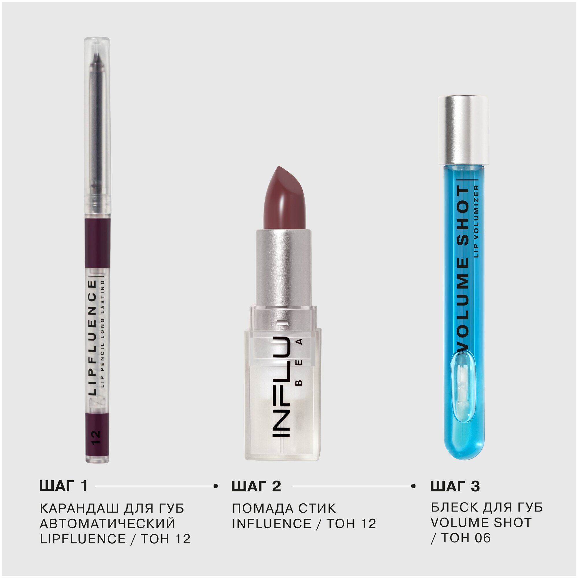 Глянцевый блеск для губ с увеличивающим эффектом VOLUME SHOT от INFLUENCE BEAUTY с легкой нелипкой текстурой создан на основе технологии PLUMPINIZER. Ментол в составе стимулирует микроциркуляцию крови и визуально увеличивают губы. Витамин Е и масло алоэ ухаживают за кожей, одновременно увлажняя и защищая ее. Для придания губам большего объема наносите блеск VOLUME SHOT на маску для губ VOLUME DOSE от INFLUENCE BEAUTY. В ассортименте 6 тонов. Продукция не тестируется на животных. СПОСОБ ПРИМЕНЕНИЯ: Наносите тонким слоем аппликатором или кистью, равномерно распределяя средство по губам. Ожидайте легкое пощипывание. Блеск можно использовать как самостоятельное средство или как завершающий штрих поверх губной помады. Для максимального глянцевого и 3Д-эффекта наносите блеск в два слоя. Избегайте попадания средства в рот или на слизистую глаз.