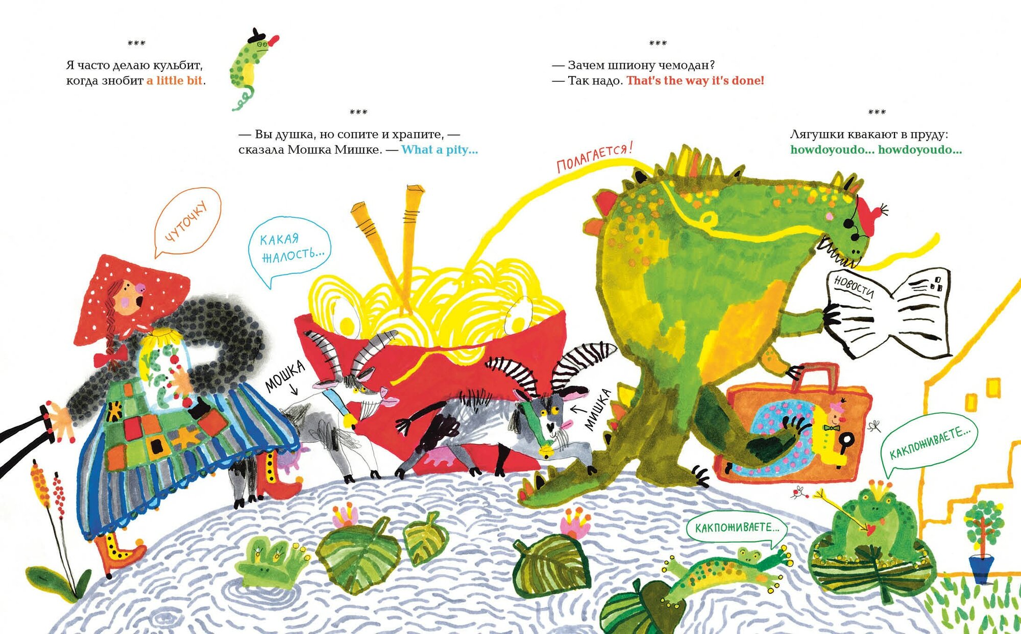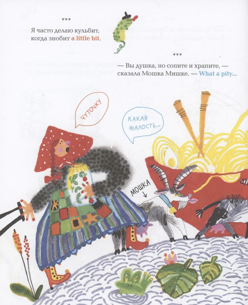 Невероятно художественная и познавательная книга для юных и не очень полиглотов! Замечательный учебник английского языка, написанный сразу на двух языках и в стихах. Смешные и забавные стихи не оставят никого равнодушным. А невероятные иллюстрации просто не позволят оторвать от книги глаз! Удачная смесь развлекательной художественной литературы с познавательной. Очень рекомендую!