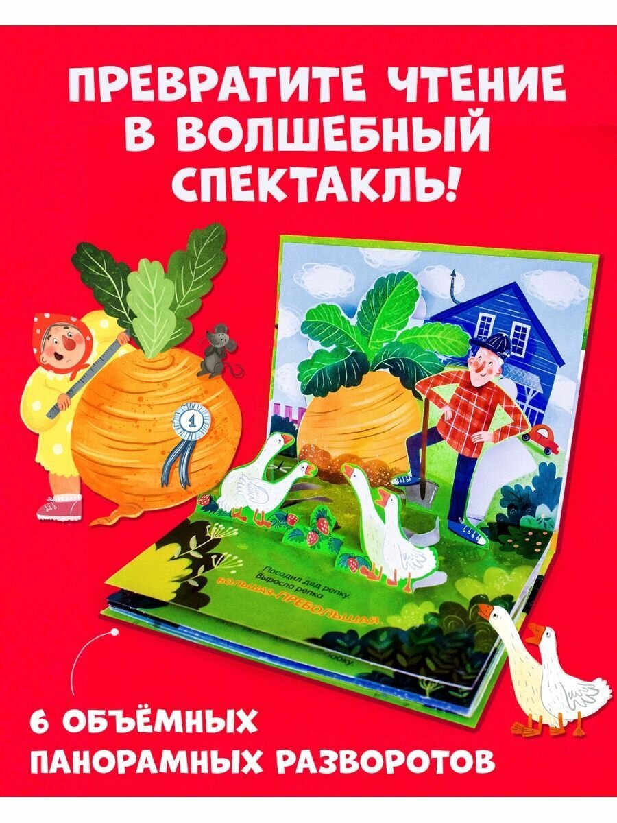 Любимая детская сказка, удивительные объемные картинки и забавная игра на внимательность — идеальный формат для знакомства маленьких читателей с волшебным и поучительным сюжетом. С такими иллюстрациями ребенок точно не заскучает, ведь на каждом развороте прячутся интересные и забавные детали. В книжке крупный шрифт и самый популярный вариант сказки, поэтому она отлично подходит как для чтения родителями малышам, так и для первых шагов в самостоятельном чтении.