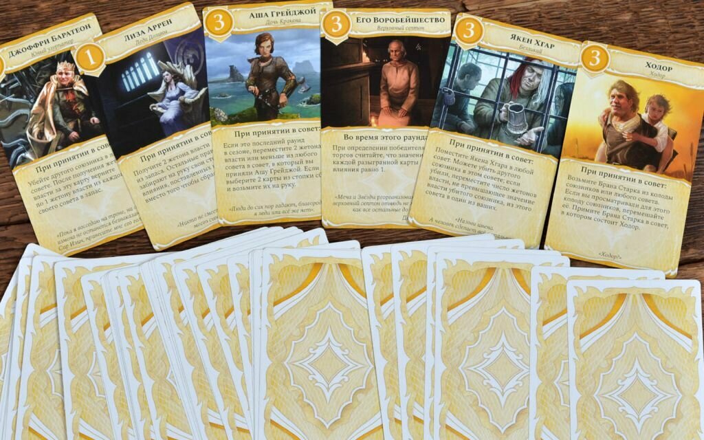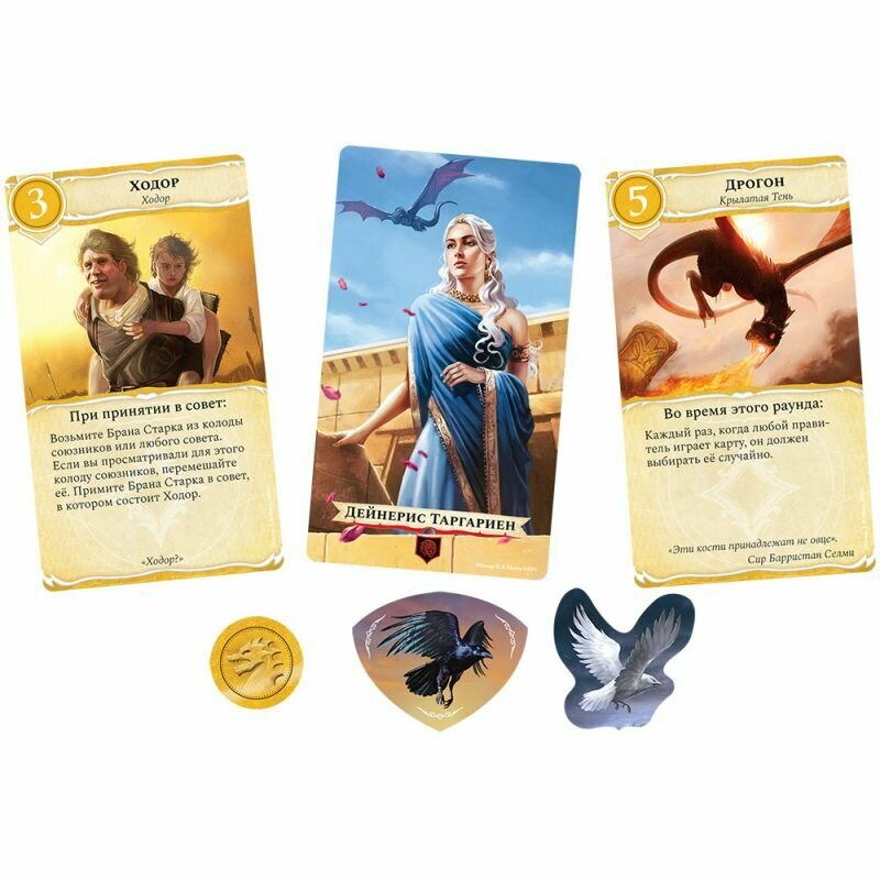- В начале раскрывается карта союзника, за расположение которого будут бороться игроки. Каждый союзник – это известный персонаж книжной саги, обладающий уникальной способностью, подчёркивающей его характер и роль в сюжете. В игре нашлось место самым разным обитателям Вестероса, включая хитроумного Вариса, расчётливого Тайвина Ланнистера, загадочного Пестряка и многих других
