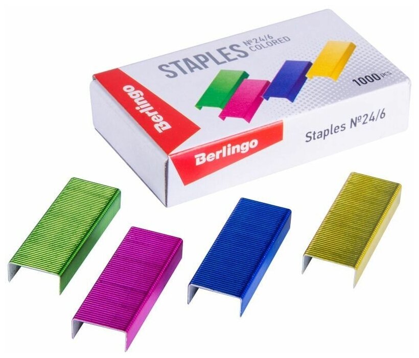 Скобы для степлера Beringo №24/6 1000 шт цветные Berlingo (SH710)