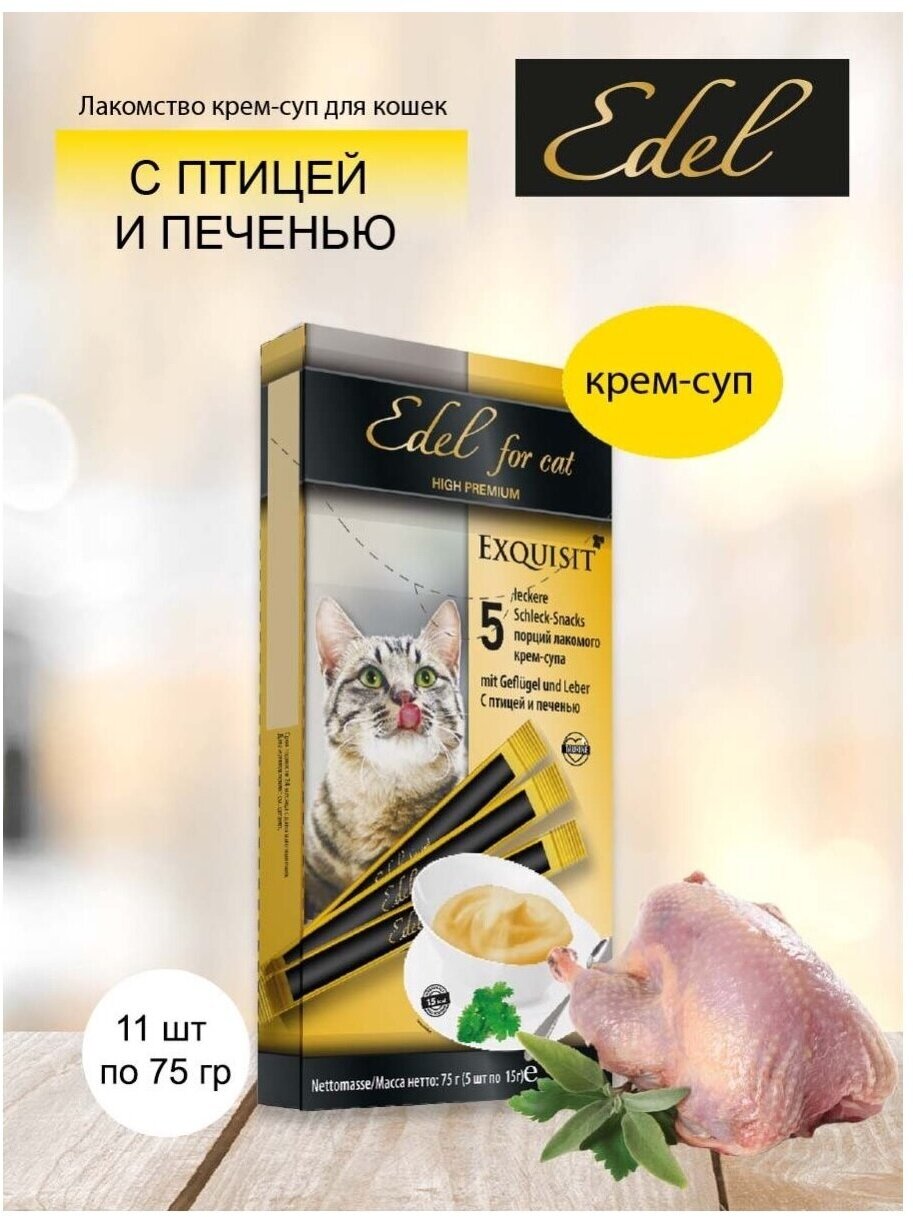EDEL CAT Лакомство Крем-суп птицапечень д/кошек 5шт 75г (1876)
