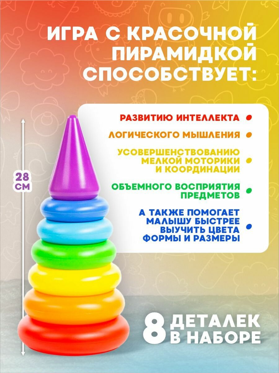 На сегодняшний день товар «Развивающая игрушка Полесье Пирамидка Колечко-конус (8 элементов)» можно купить с кешбеком в 1 магазине: Яндекс.Маркет