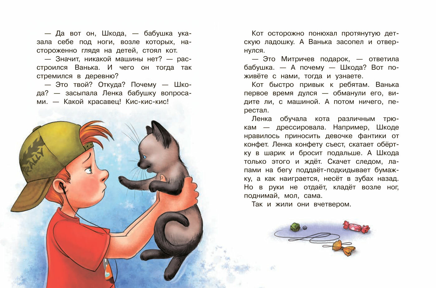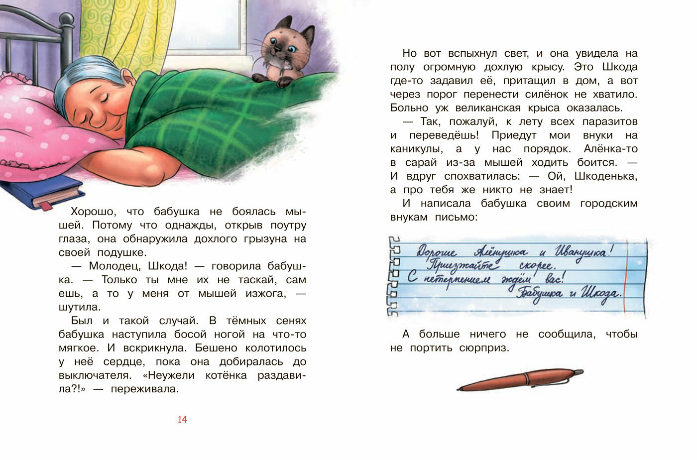 Однажды у бабушки появился котёнок, которого спас лесник. Имя появилось у него довольно скоро - Шкода. Ох, сколько всего он натворил у бабушки. Его даже в город к внукам на перевоспитание отправили, но это же Шкода, он смог ускользнуть и вернулся к хозяйке. Благодаря крупному шрифту книга подходит для самостоятельного чтения.