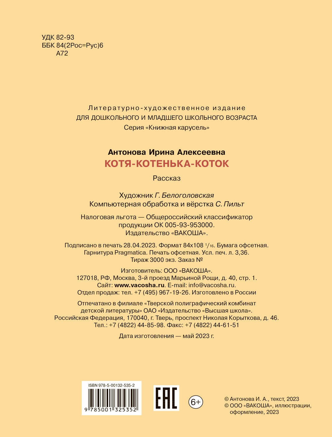 Книга: Котя-котенька-коток (Антонова Ирина Алексеевна); Вакоша, 2023