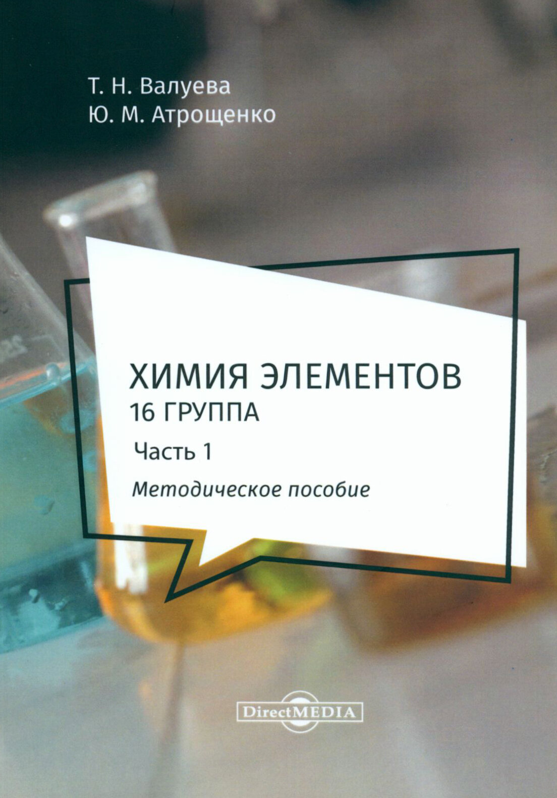 Химия элементов. 16 группа. В 2 частях. Часть 1. Методическое пособие (Валуева Татьяна Николаевна, Атрощенко Юрий Михайлович); Директмедиа Паблишинг, 2018