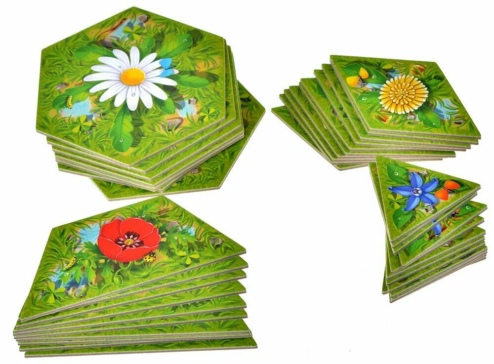 Игрок выбирает один из тайлов луга и размещает его на столе так, чтобы он касался как минимум одного из ранее выложенных тайлов.