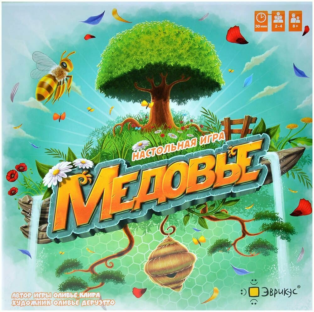 Настало лето, на зелёном лугу начинают распускаться прекрасные цветы. Пришла пора маленькой пчёлке потрудиться на славу! В настольной игре "Медовье" вам предстоит управлять полетом пчелы, собирающий нектар. Только ей одной известно, сколько и каких цветов надо облететь, чтобы получился самый вкусный мёд! Цветов на лугу становится всё больше и пчеле становится труднее уследить за всем многообразием. Настоящая пчела-труженица просто обязана собрать самый сладкий мёд, чтобы устроить настоящий праздник мёда! Игрокам предстоит собирать нектар с цветков, совпадающих с их изображениями на карточках мёда. Игрок, собравший больше всех карточек мёда, становится победителем.В свой ход игрок может выполнить одно из двух действий.