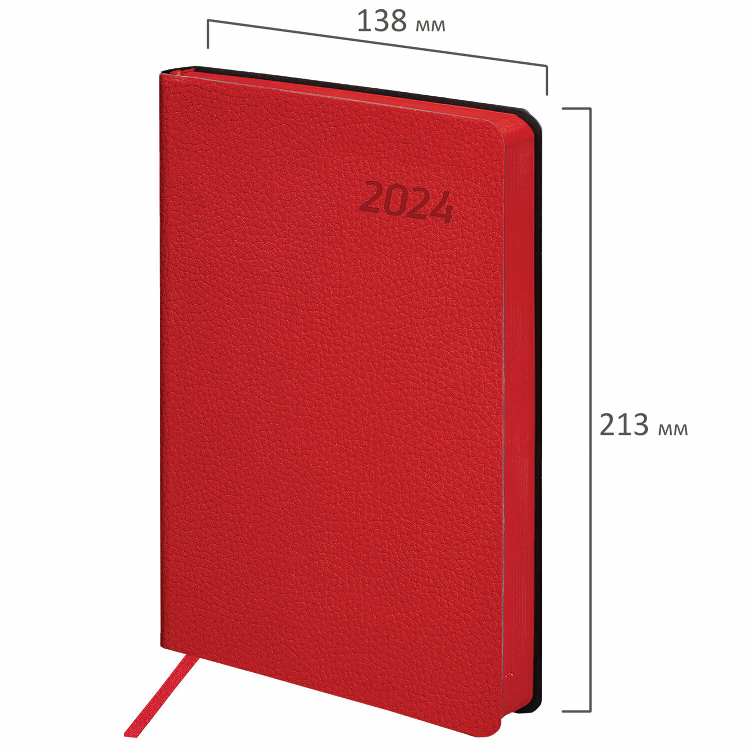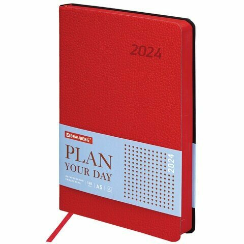 Ежедневник датированный 2024 Stylish А5 168 листов красный Brauberg