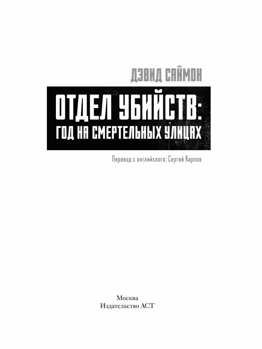 Саймон был первым репортером, получившим неограниченный доступ в убойный отдел, и эта захватывающая книга рассказывает о целом годе, проведенном на жестоких улицах американского города.