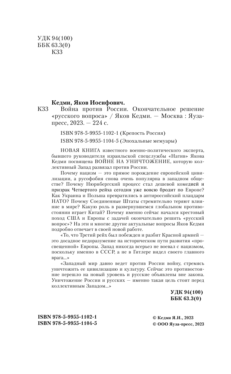 Война против России. Окончательное решение «русского вопроса» (Яков Кедми); Эксмо, Редакция 1, 2023