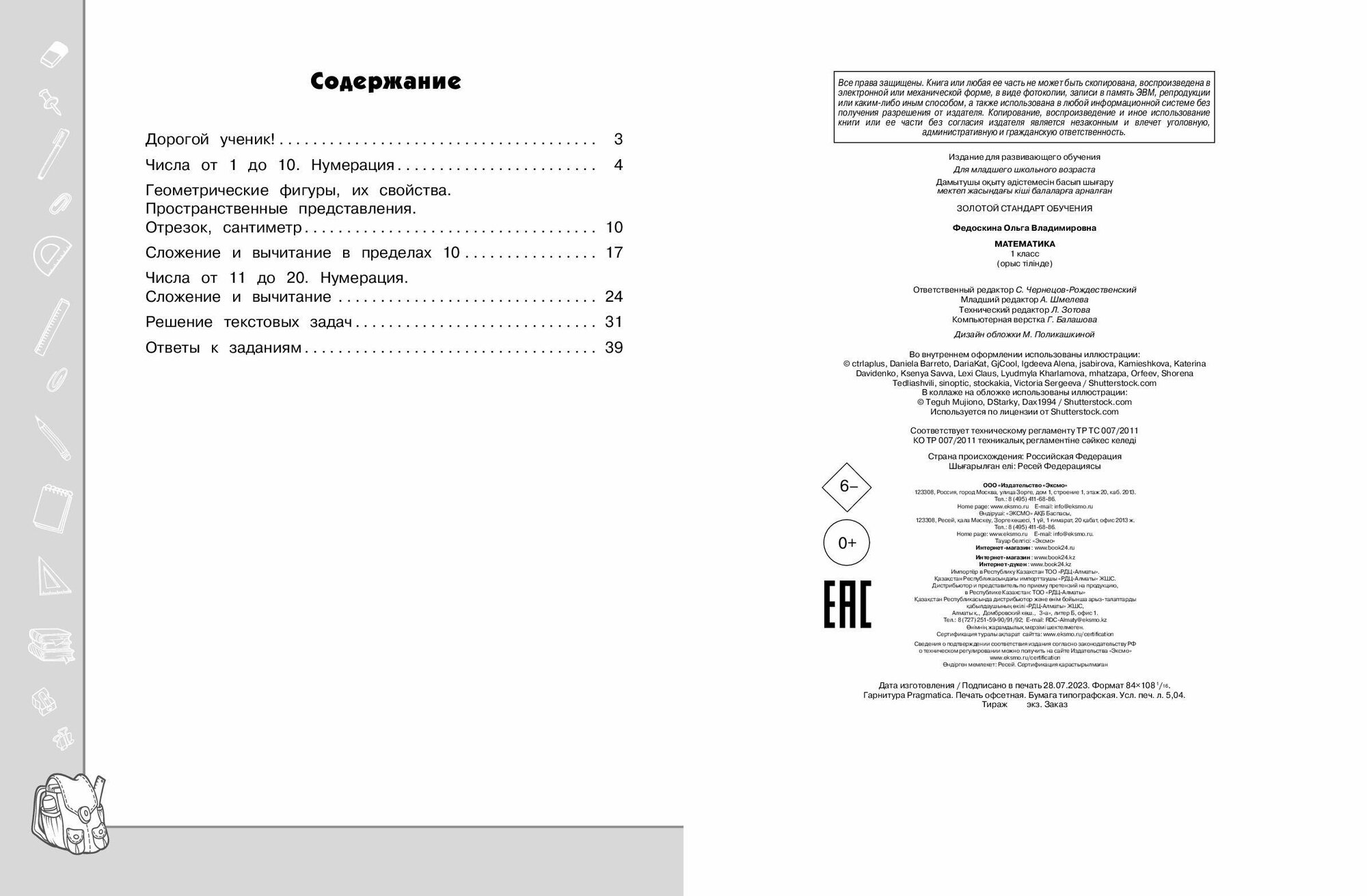 Книга: Математика. 1 класс (Федоскина Ольга Владимировна); ООО "Издательство "Эксмо", 2023