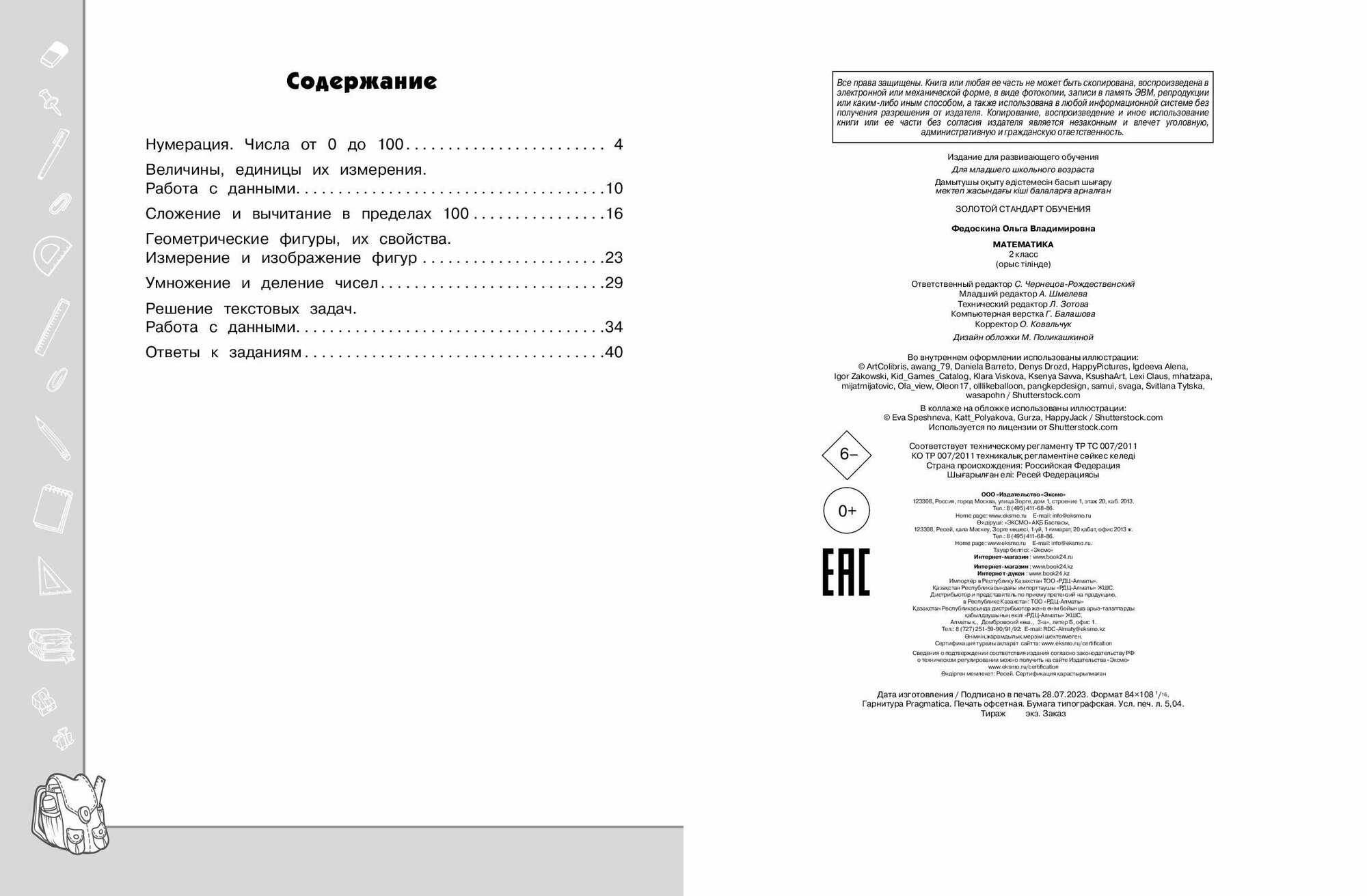 Книга: Математика. 2 класс (Федоскина Ольга Владимировна); ООО "Издательство "Эксмо", 2023