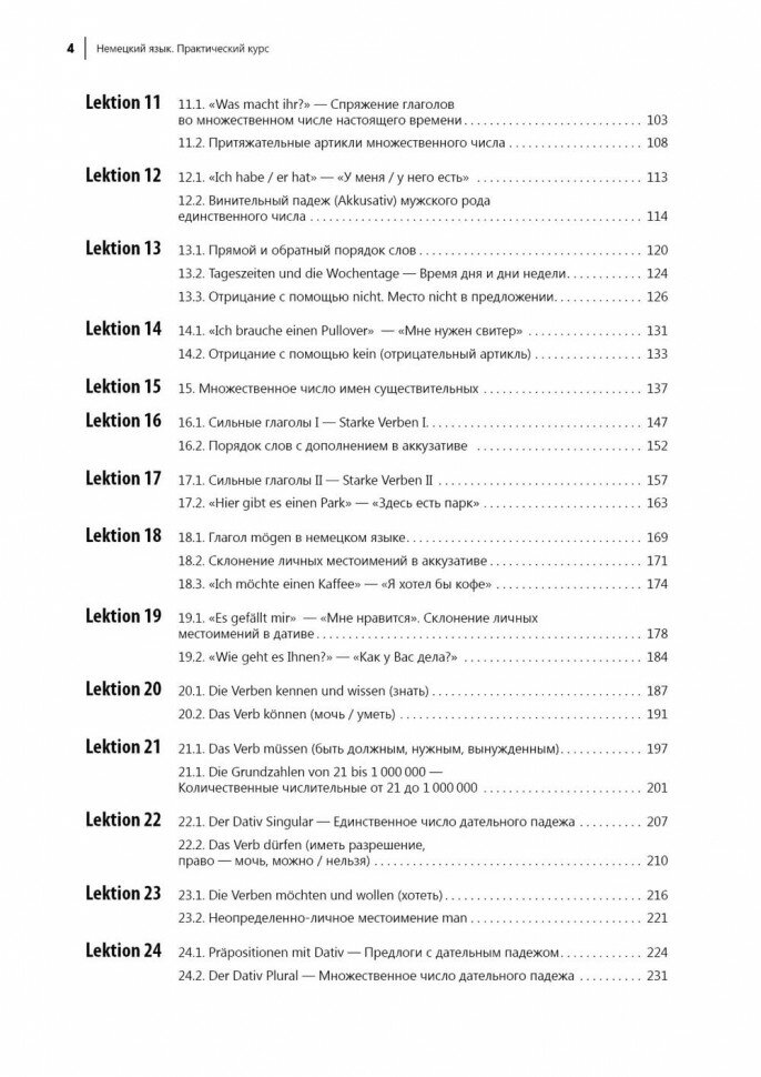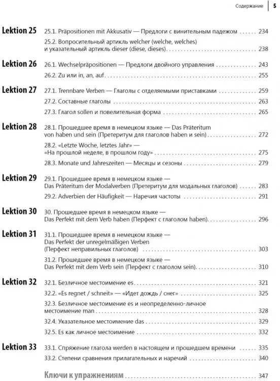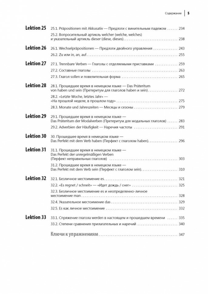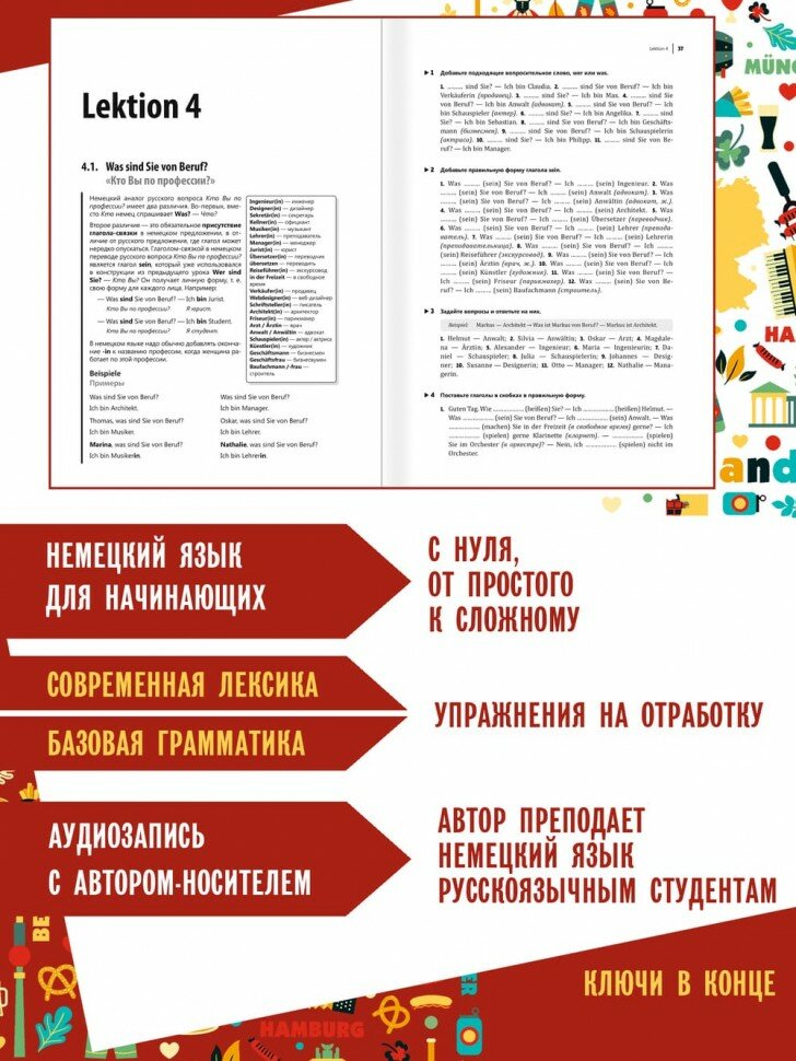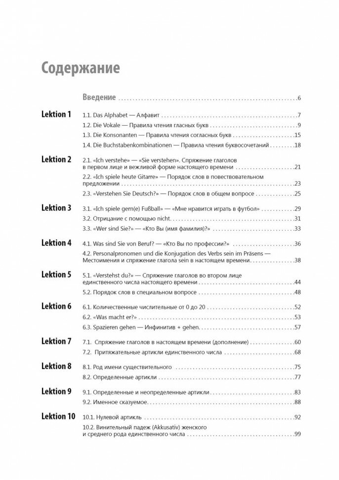Каждый раздел содержит понятные грамматические разъяснения и простую лексику. Разнообразные упражнения во второй части раздела помогают отработать языковые навыки. Это позволяет заложить прочную основу в изучении немецкого языка.