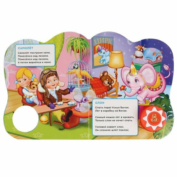Книжка читает сама: озвучена профессиональными актерами! Ребенок с удовольствием будет листать плотные страницы с яркими картинками, нажимать на красивую кнопку с рисунком и слушать любимые стихи. Благодаря компактному формату книгу удобно взять с собой в дорогу.
