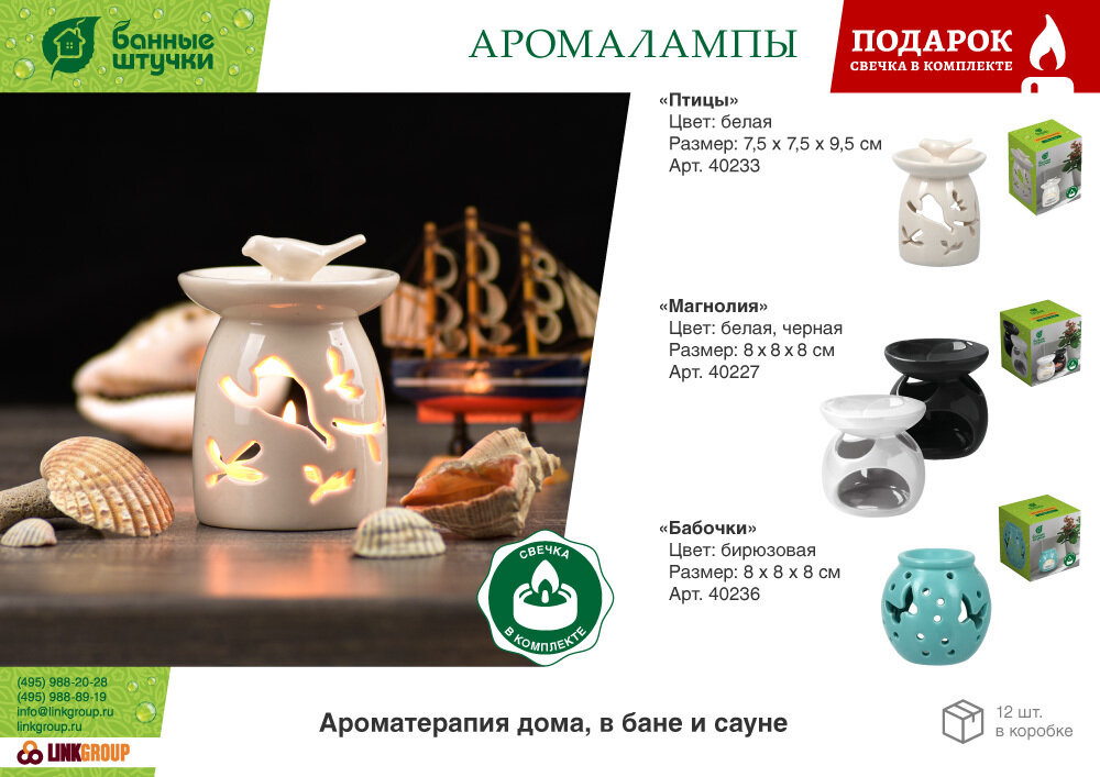 Набор для бани и сауны Банные Штучки Аромалампа Птицы + Свеча N. PZ. Im.&Ex. Co.,Ltd