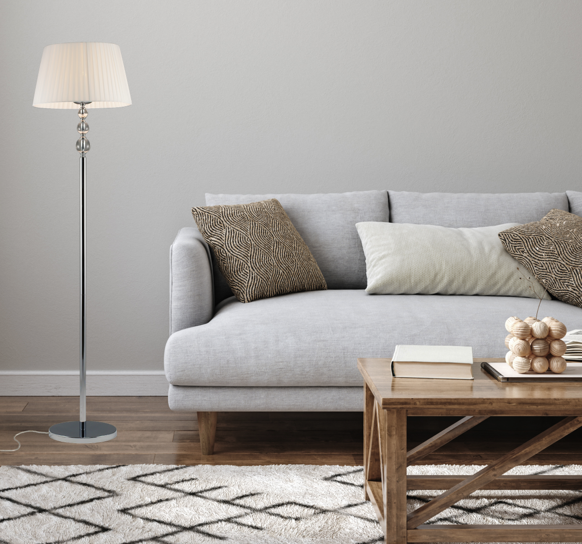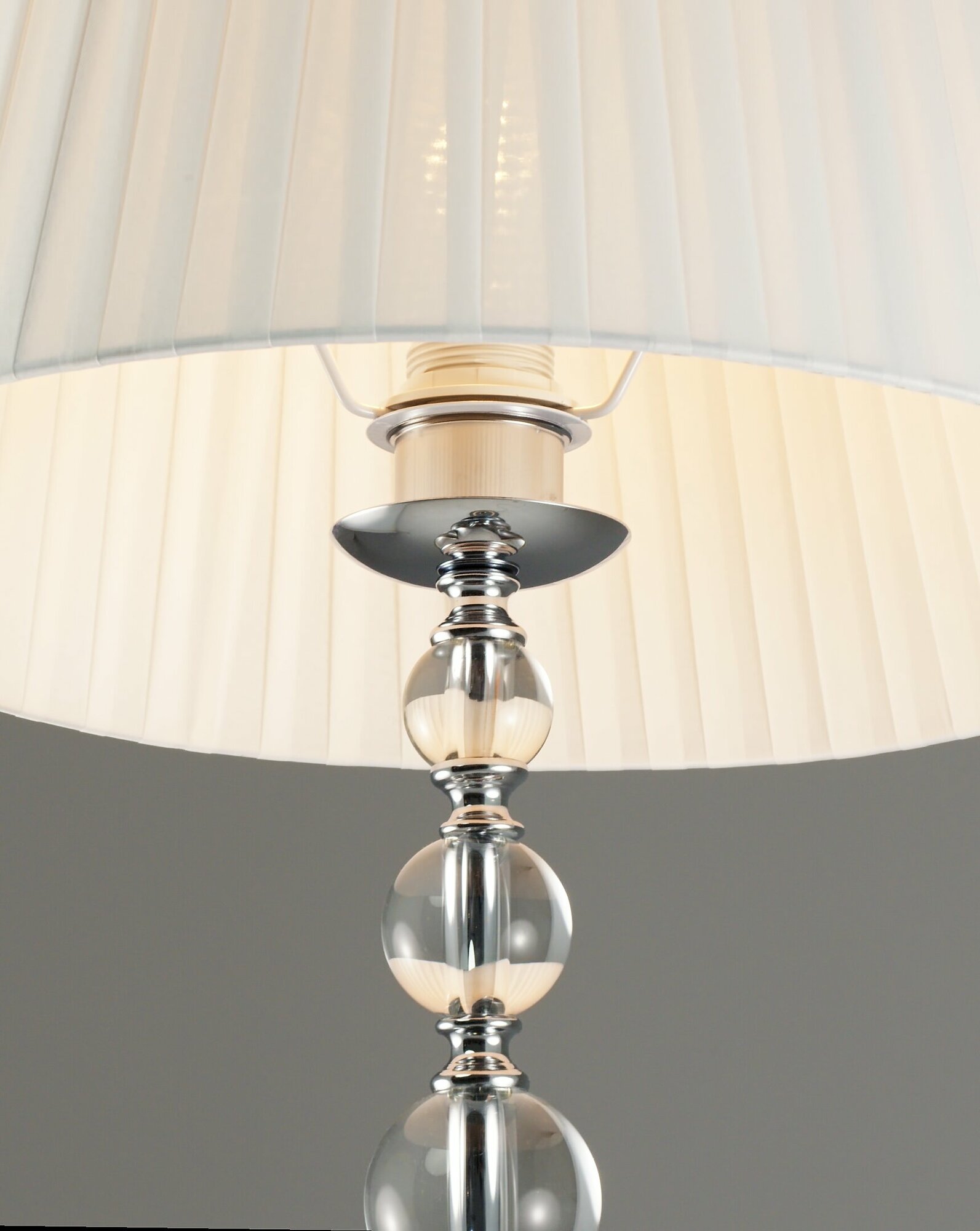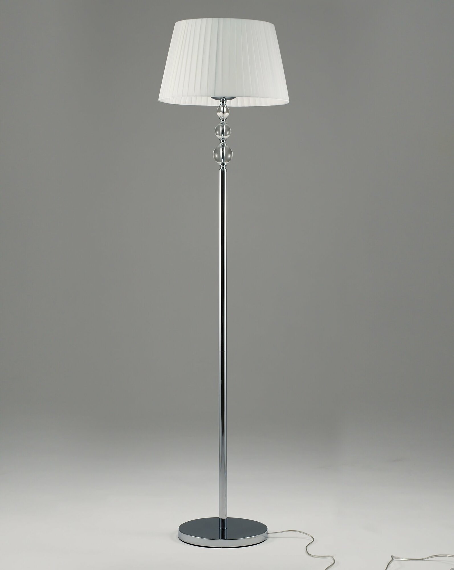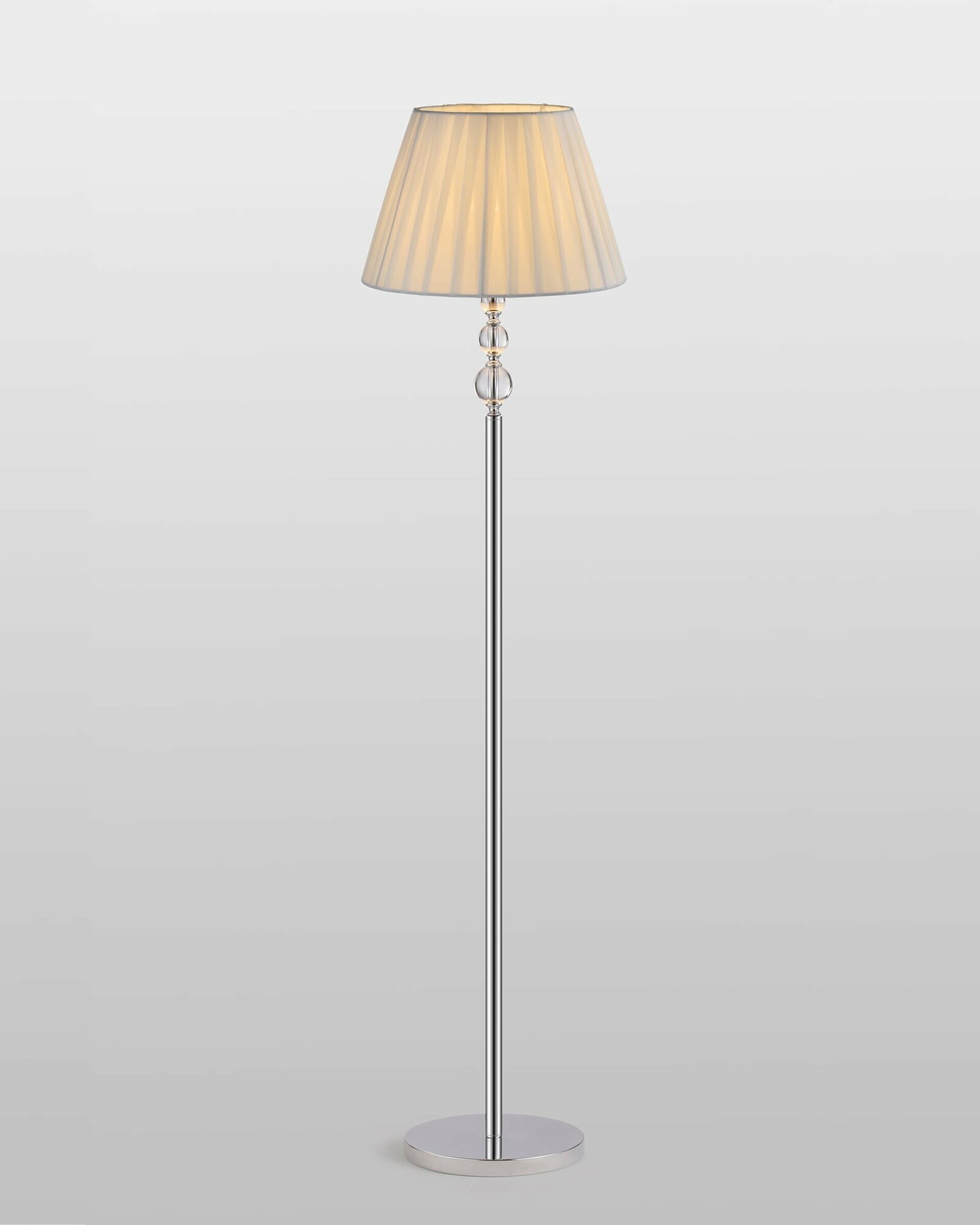 Напольный торшер из коллекции Feels. Абажур перетянут полупрозрачной тканью, которая мягко рассеивает свет и немного приглушает ее. Для освещения подходят лампы накаливания или LED с цоколем E14. Металлический каркас в простом исполнении декорирован стеклянными сферами, которые придают воздушность. Торшер Feels станет прекрасным дополнительным освещением в спальне, гостиной или зале.