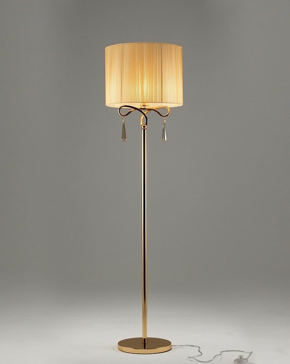Торшер из коллекции Chilly от итальянского бренда Moderli в классическом стиле. Абажур перетянут нитями золотого цвета для мягкого рассеивания света и создания атмосферы уюта и теплоты. Корпус из качественного металла цвета стали украшен камнем в виде капли, который дополняет витиеватый дизайн. Нежная цветовая гамма светильника поможет украсить любой современный интерьер и подходит для дополнительного освещения спальни, гостиной и гостевой комнаты.
