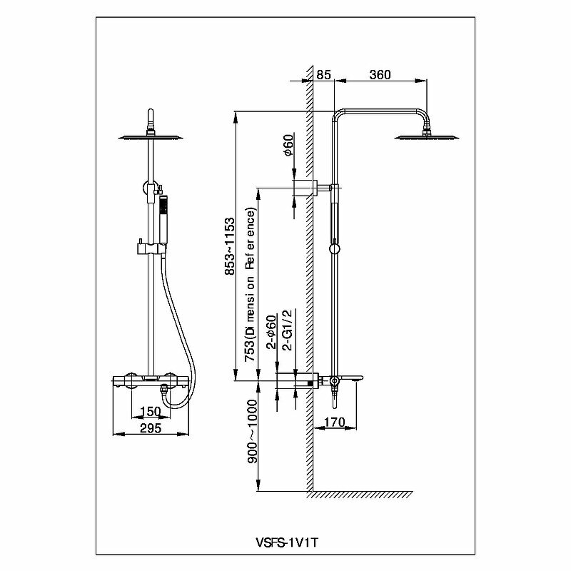 - Форма верхнего душа: круглая.