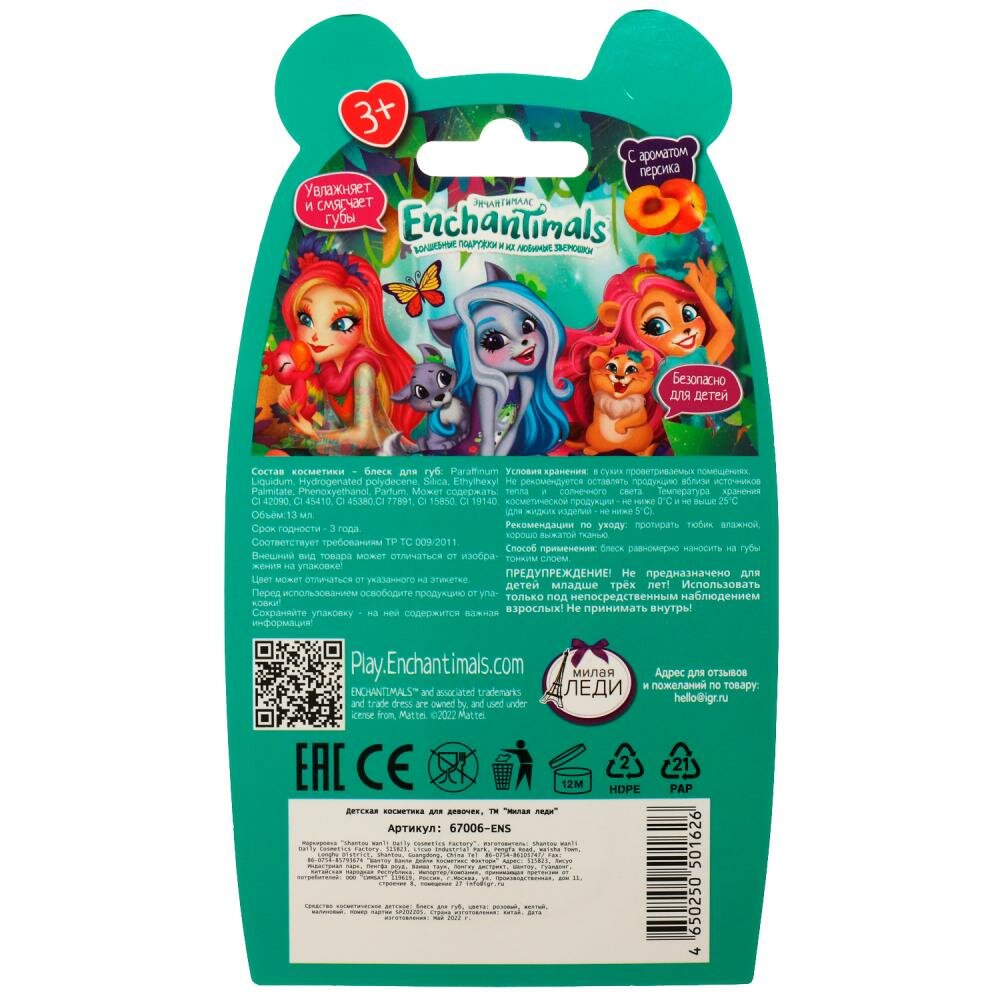 | Полное наименование | Блеск для губ детский Милая леди Enchantimals в ассортименте |