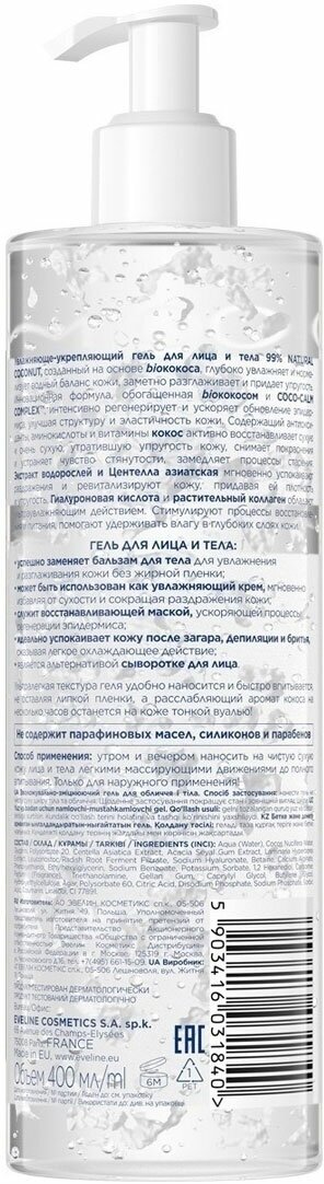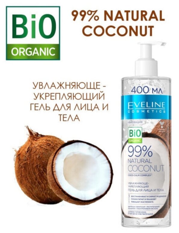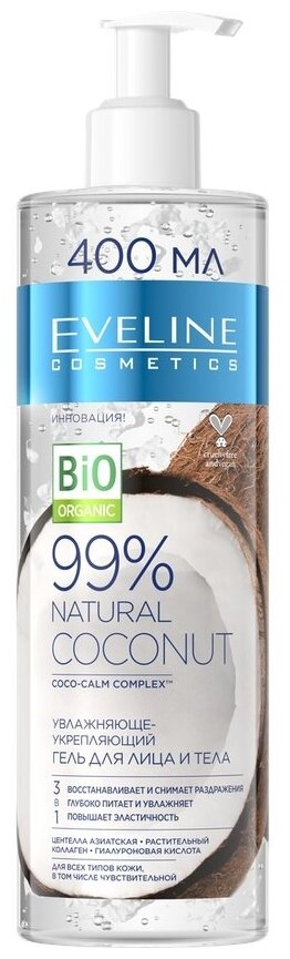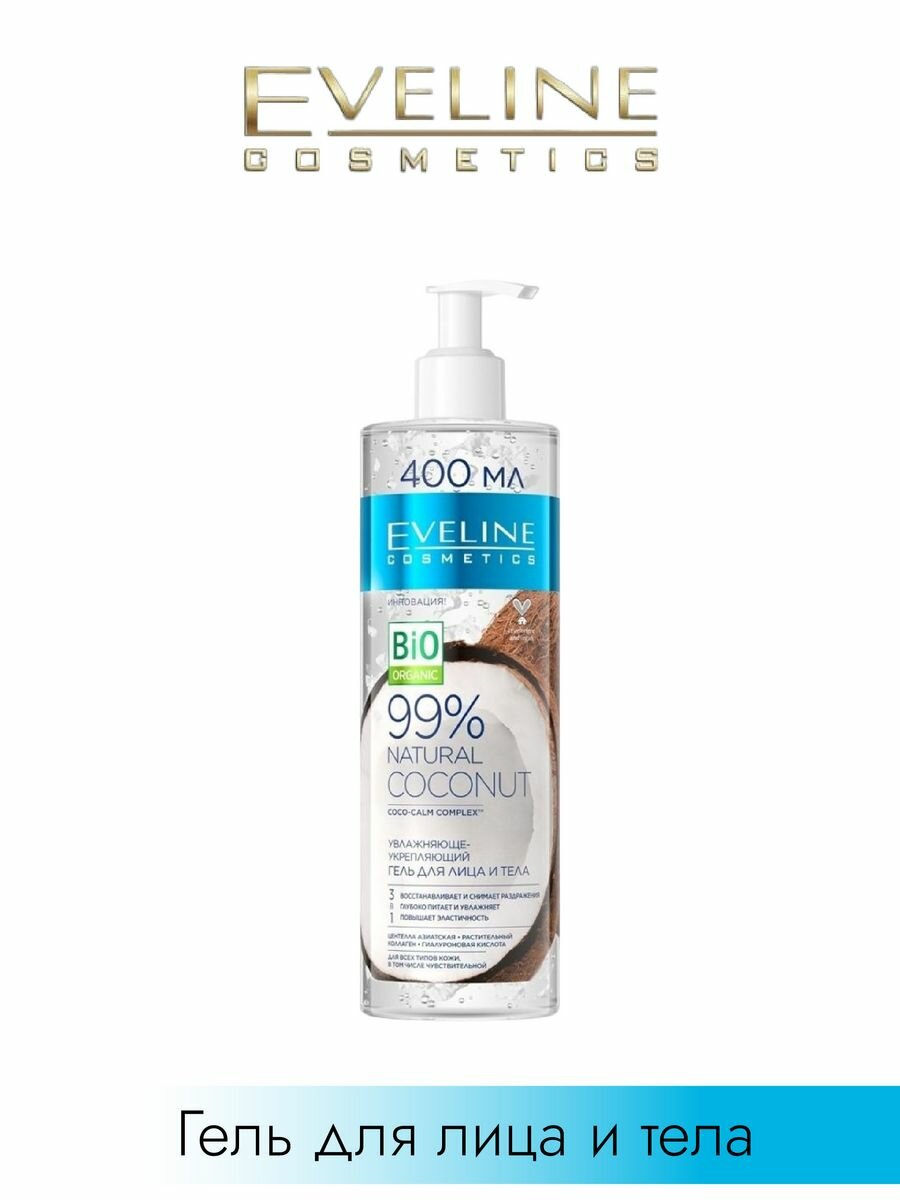 Гель для лица и тела Еveline Natural 99% Coconut укрепляющий 3в1 400 мл