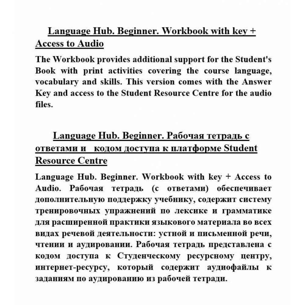 Сервис сравнения цен СкидкаГИД предлагает сравнить цены на товар «Книга: Language Hub. Beginner. Workbook with key and access to audio (Ingrid Wisniewska. Ed Price); MacMillan, 2020»