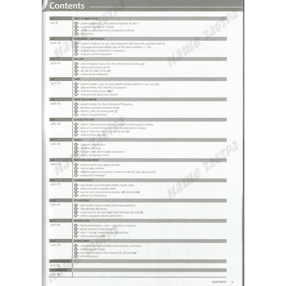 Рабочая тетрадь (с ответами) содержит систему тренировочных упражнений по лексике и грамматике для расширенной практики языкового материала во всех видах речевой деятельности: устной и письменной речи, чтении и аудировании. Рабочая тетрадь выходит с кодом доступа к интернет-ресурсу, который содержит аудиофайлы к заданиям по аудированию из рабочей тетради.