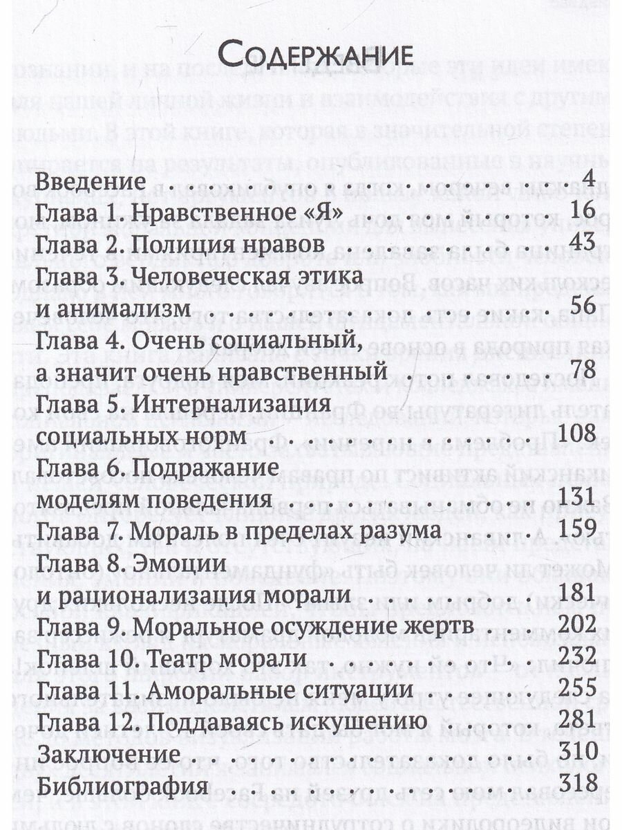 В ХХI веке тема морали может показаться устаревшей. Но на самом деле она вездесуща и постоянно обсуждаемая во всех сообществах. Люди все время оценивают, демонизируют, судят друг друга и устанавливают законы и моральный кодекс. Но что такое мораль на самом деле? И как моральные нормы формируют историю нашей жизни? Эта книга опирается на результаты научных экспериментов и исследований, в ней нет однозначных аргументов в пользу какой-либо конкретной моральной концепции для вынесения универсального вердикта о моральности или аморальности человека. Однако в ней много говорится о том, как мы представляем себе мораль и о нашей фундаментальной общности. Она написана с точки зрения социальной психологии — исследований, которые дают оригинальные, захватывающие и часто противоречивые представления о нашей человеческой природе. Книга будет полезна всем, интересующимся социальной психологией, а также вопросами возникновения и развития моральных норм.