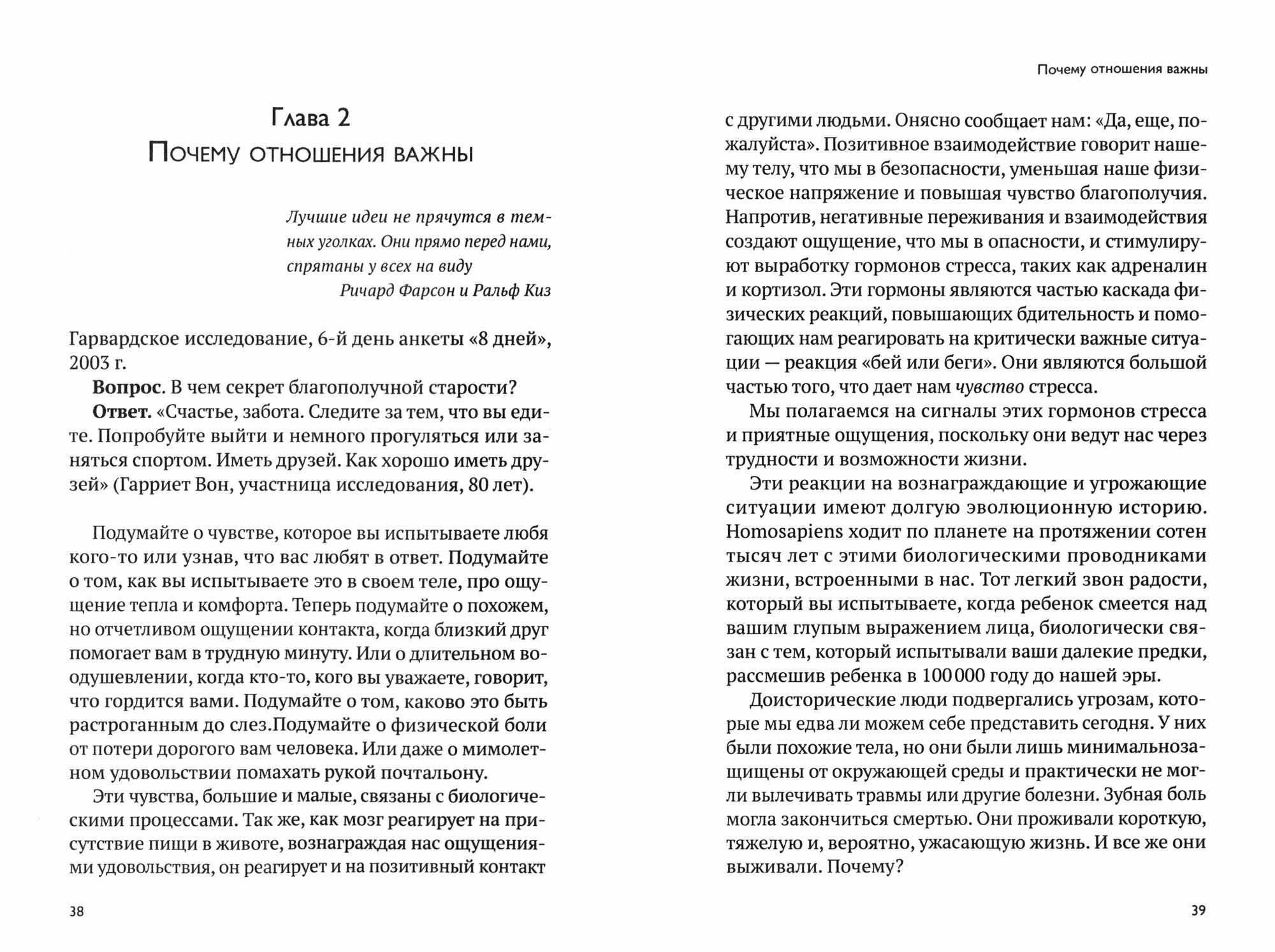 В основе книги лежат результаты уникального Гарвардского исследования жизни людей, начавшегося в 30-х годах XX века и продолжающегося поныне. Авторы — руководитель и заместитель проекта в настоящее время. Основанная на самом длительном из когда-либо проводившихся исследований жизни сотен представителей нескольких поколений, книга показывает, кто становится счастливым, кто нет, и почему — и как вы можете использовать эту информацию, начиная с сегодняшнего дня.