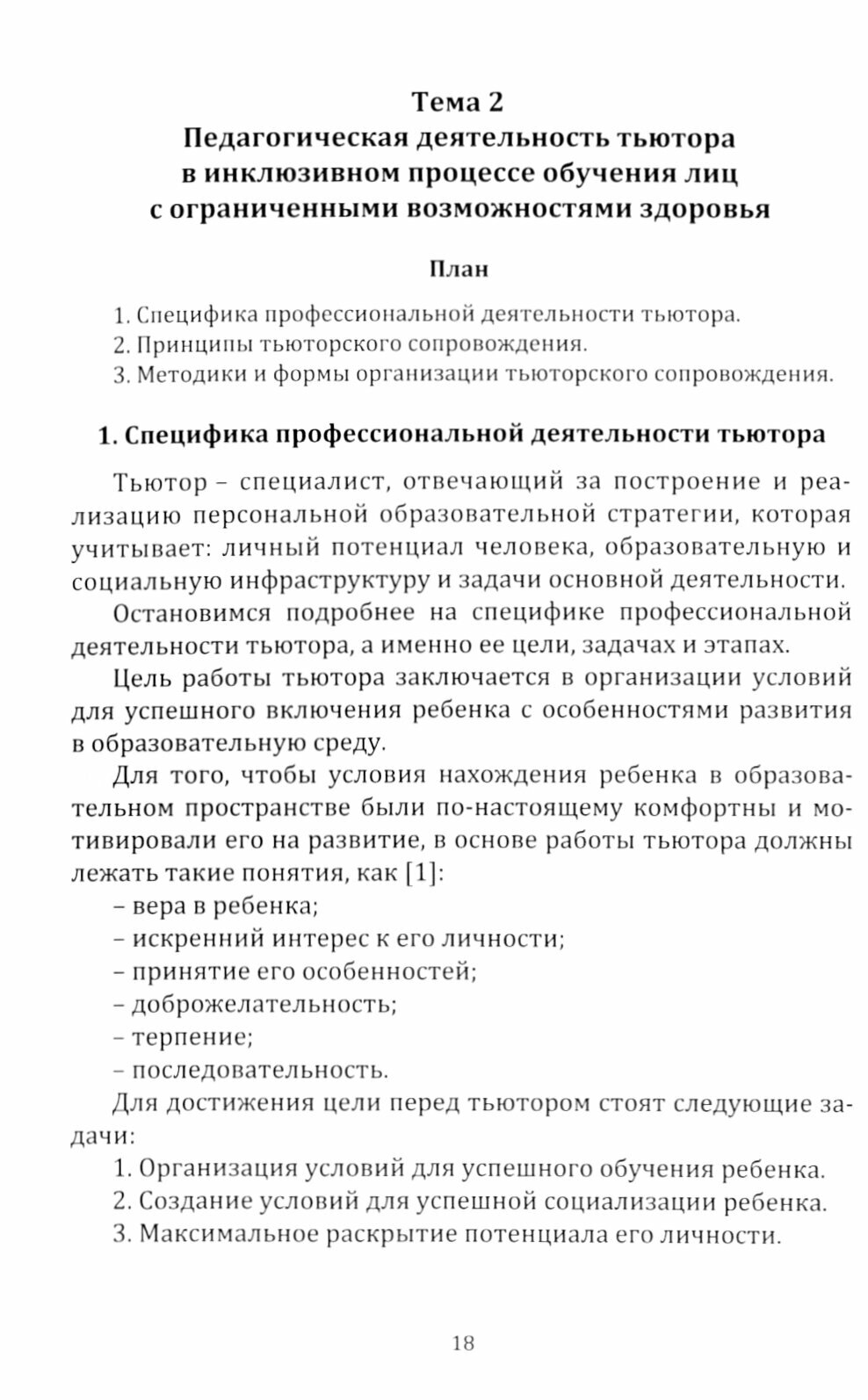 В учебном пособии «Тьюторское сопровождение лиц с ограниченными возможностями здоровья в условиях инклюзивного образования» рассматриваются основные направления деятельности тьютора в системе инклюзивной образовательной практики, цели, задачи и технологии деятельности тьютора, этапы организации тьюторского сопровождения как одной из частей инклюзивного образовательно-воспитательного процесса. Содержание данного издания позволяет получить представление о тьюторской деятельности по сопровождению лиц с ОВЗ.