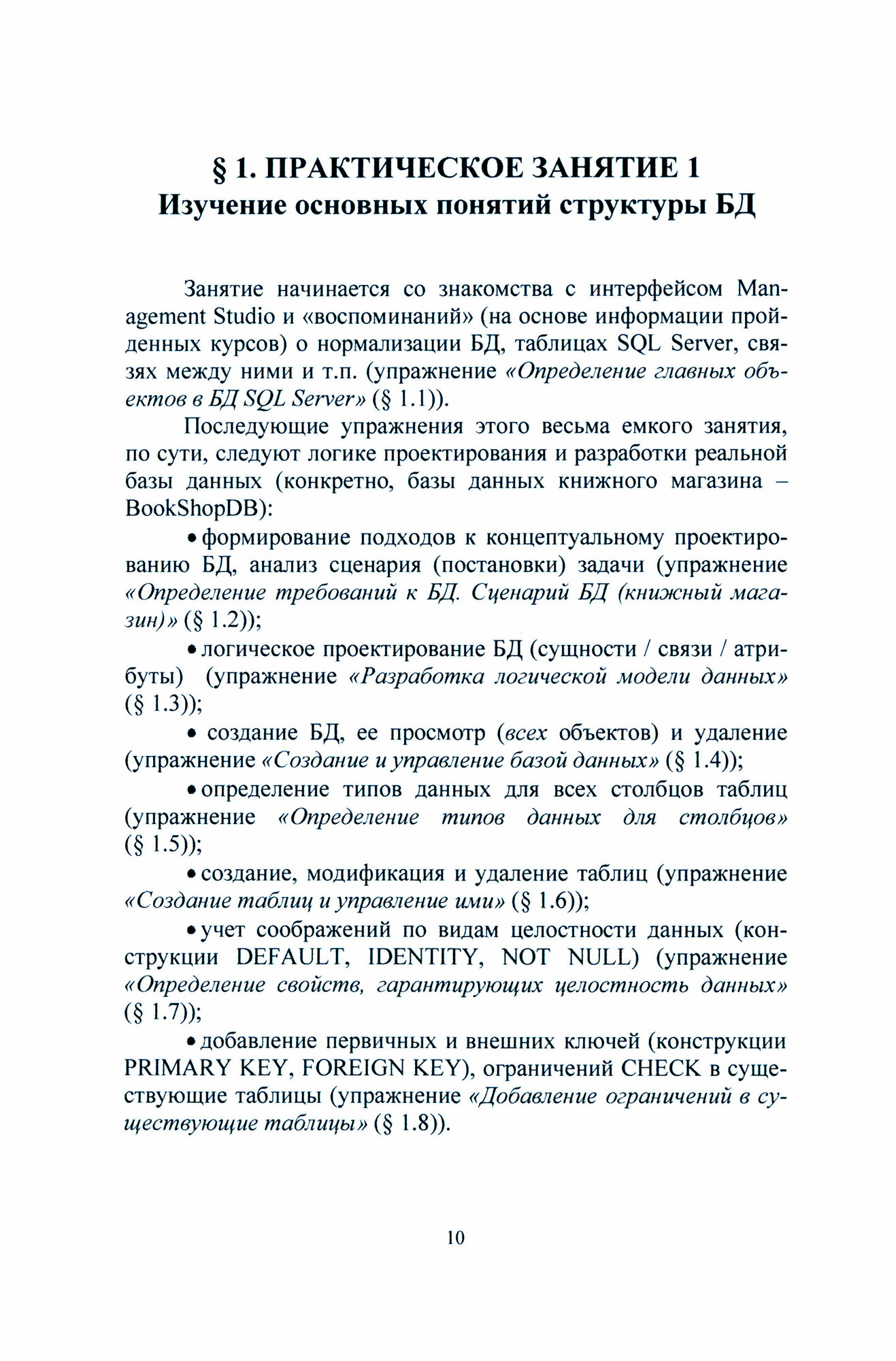 В пособии рассматриваются технологические приемы, позволяющие выполнить ряд практических заданий по работе с базами данных в среде популярной СУБД Microsoft SQL Server. Пособие может быть рекомендовано в качестве методического руководства на семинарских занятиях и при подготовке к сдаче зачетов и экзаменов по курсам, связанным с базами данных.
