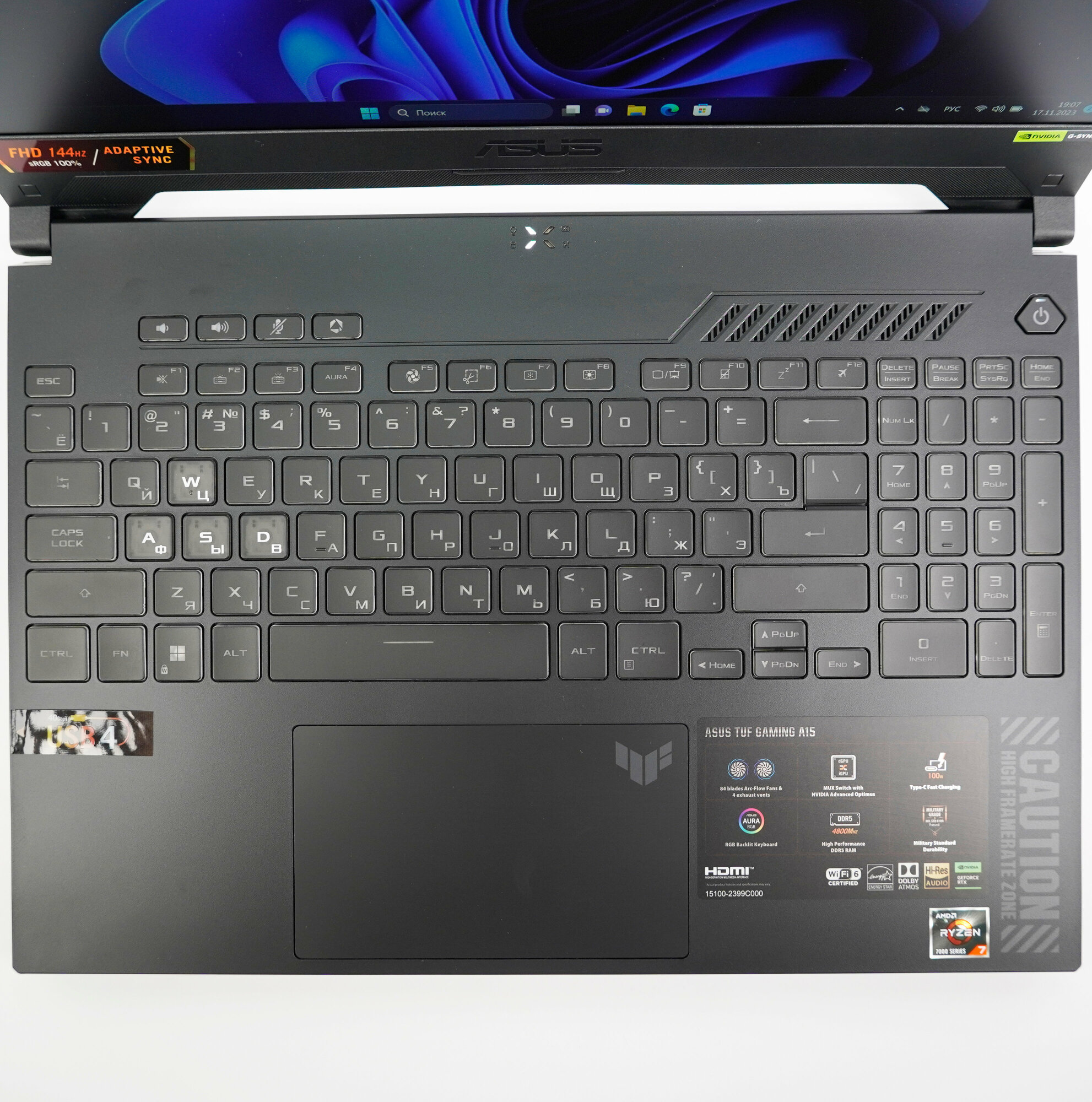 Помимо высококачественного дисплея, ноутбук оснащен технологией Adaptive-Sync. Благодаря этому, частота обновления дисплея синхронизируется с сигналом графического процессора. Даже в динамичных сценах, вы получите удовольствие от яркости, четкости, детализации.