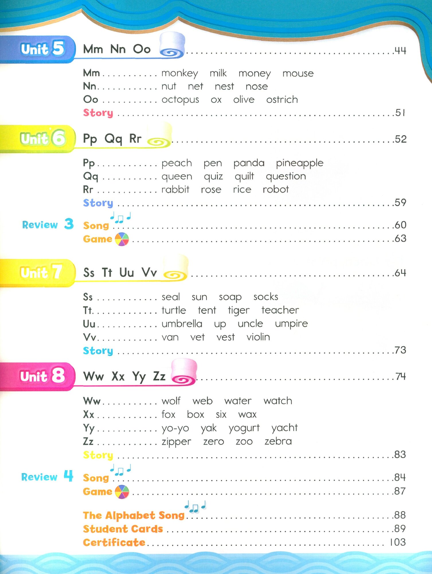 С помощью этого учебника дети выучат звуки шаг за шагом. Уникальная полоса путешествия внизу каждой страницы показывает звуки, которые вы выучили, и звуки, которые еще предстоит выучить. Разделы обзора позволяют учащимся и учителям видеть свой прогресс.